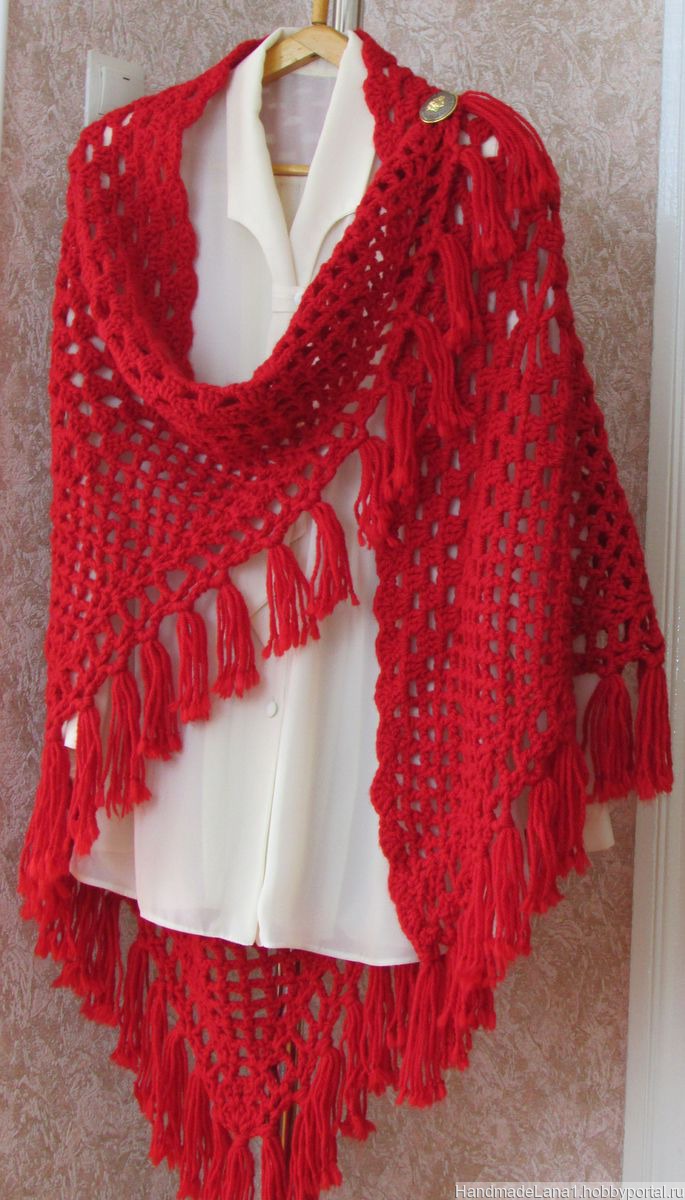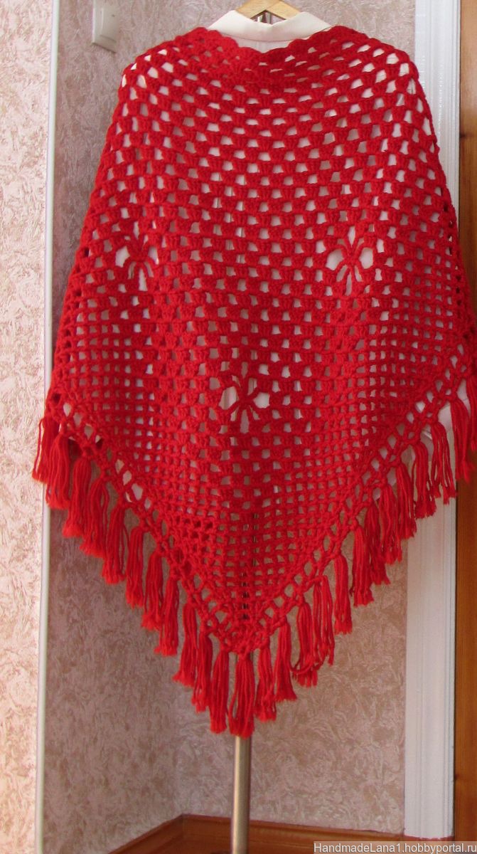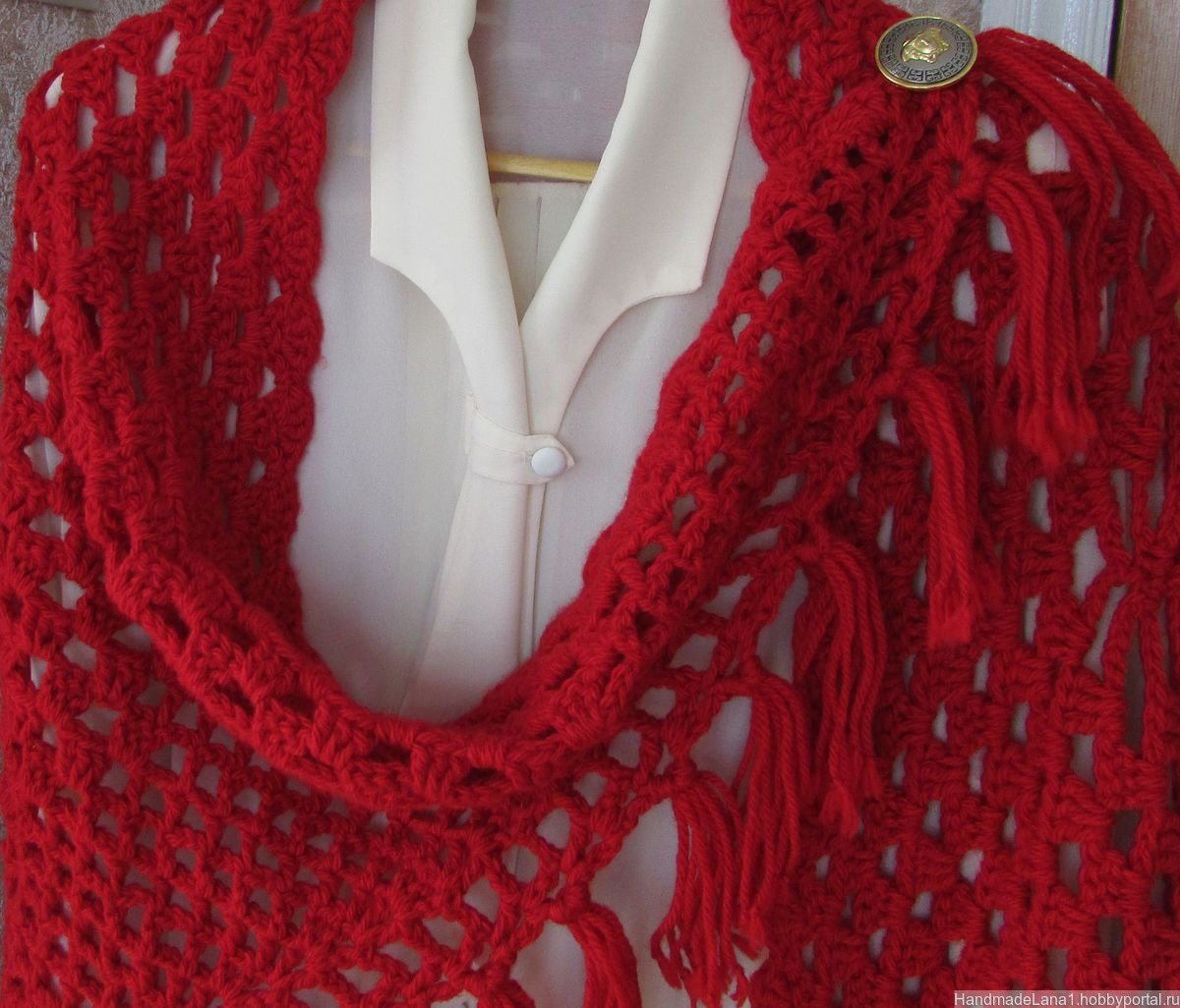 шаль, шаль ажурная, подарок, шаль крючком, шаль ручной работы, купить шаль, шаль подарок, шали, шаль вязанная, красная шаль