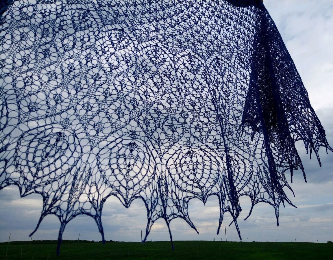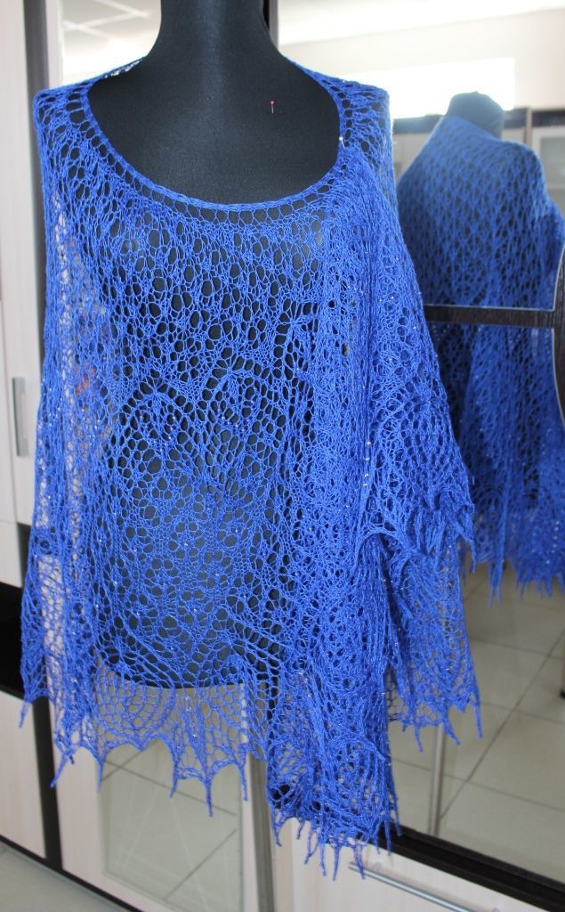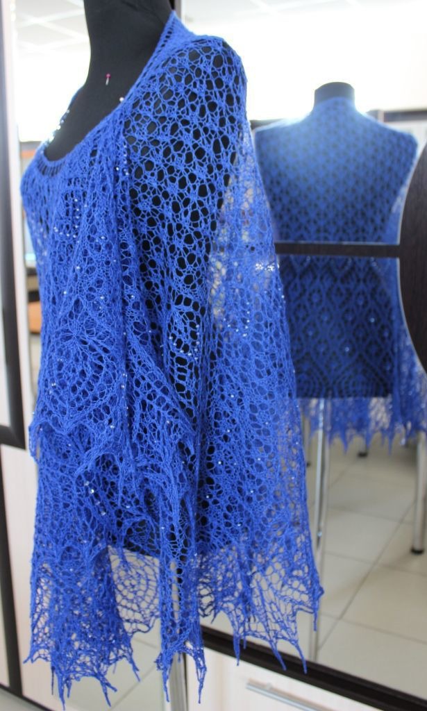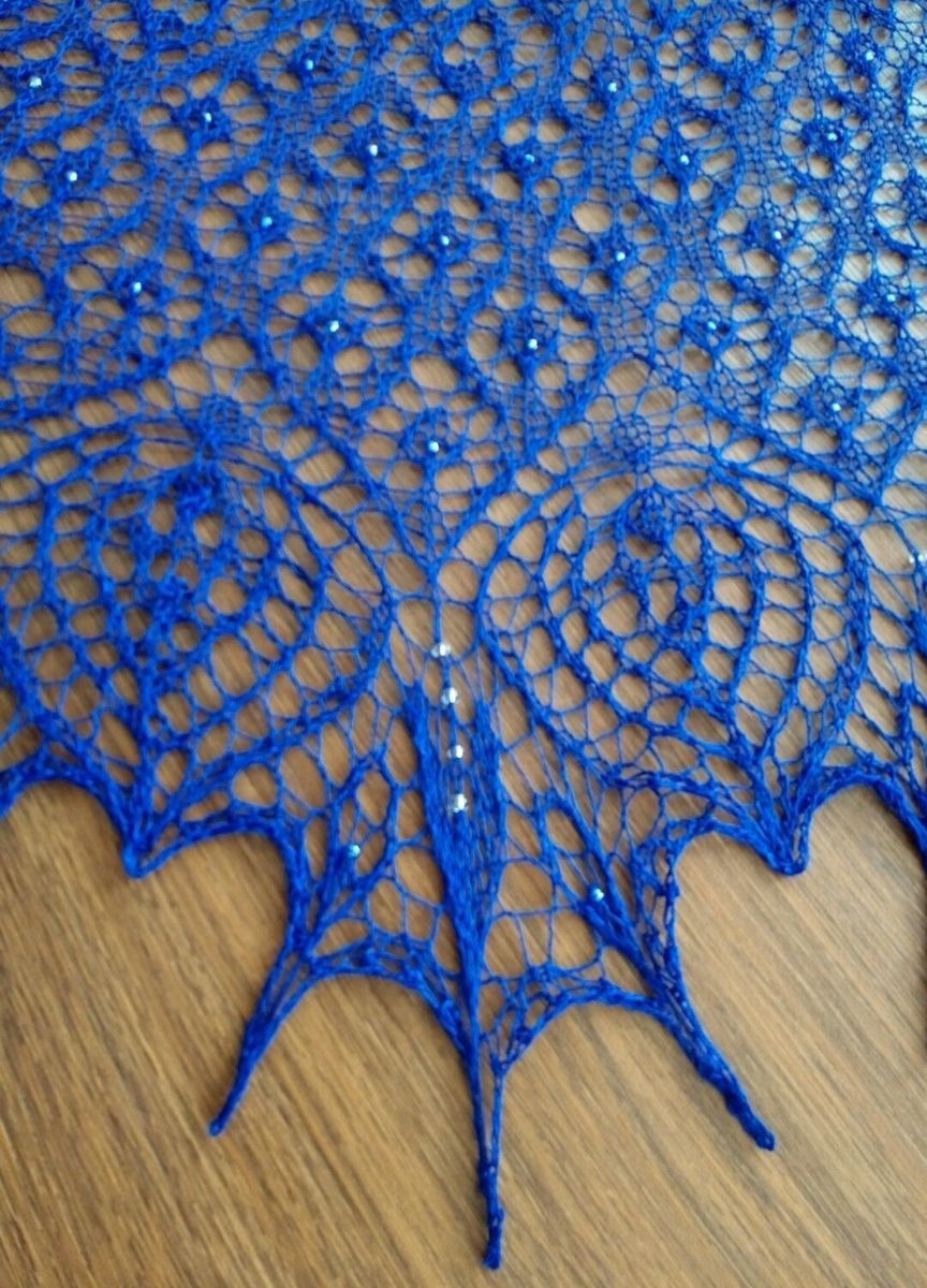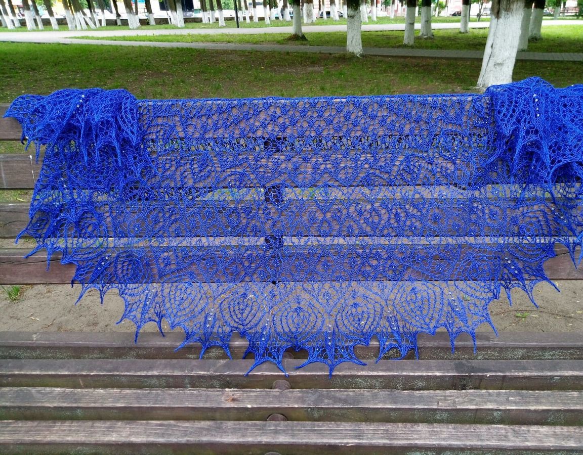 Ажурная, элегантная, нежная и воздушная шаль. Легкая и невесомая, связана из 100% литовского льна Сиулас, красивого насыщенного синего цвета, украшенная капельками бисера, сверкающими на солнце как капельки росы.
