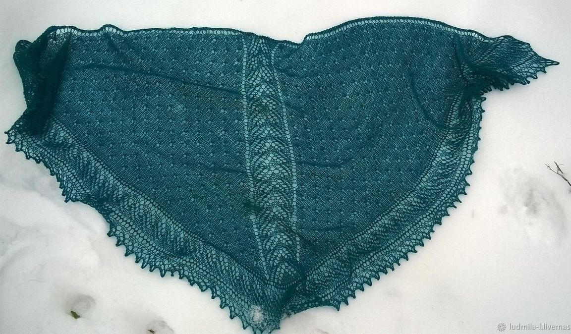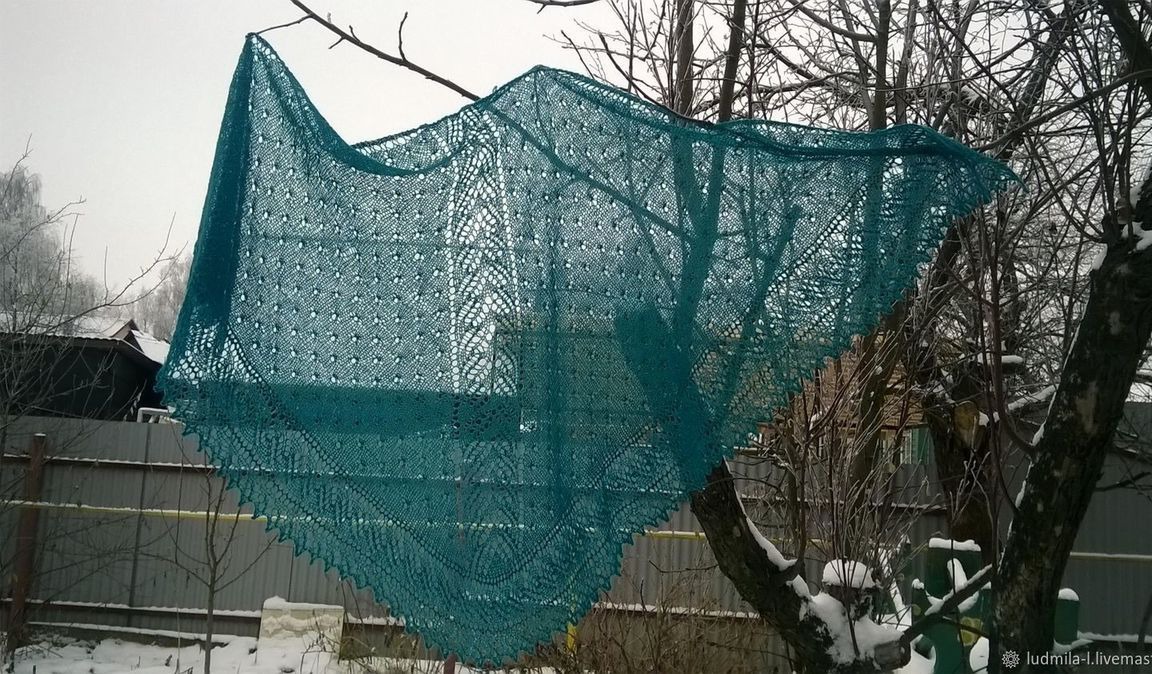 шаль, шаль спицами, шаль ажурная, вязание, шаль вязаная, вязание спицами, вязаная шаль, темно-зеленый