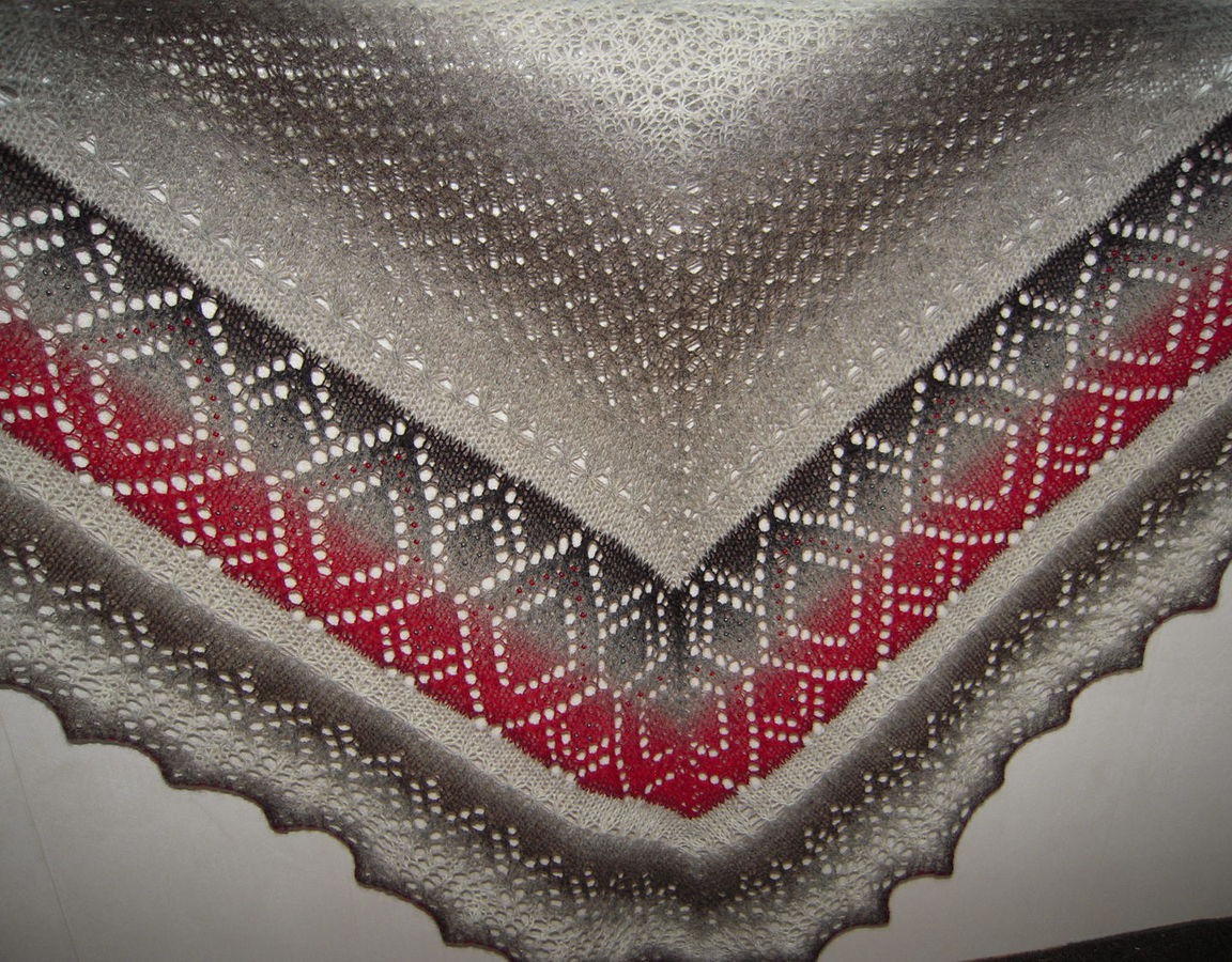 Треугольная шаль, созданная в традициях вязания эстонских шалей местечка Хаапсалу. Вся собрана из мотивов ажурного прибалтийского кружева - вязать ее трудно, но результат того стоит)