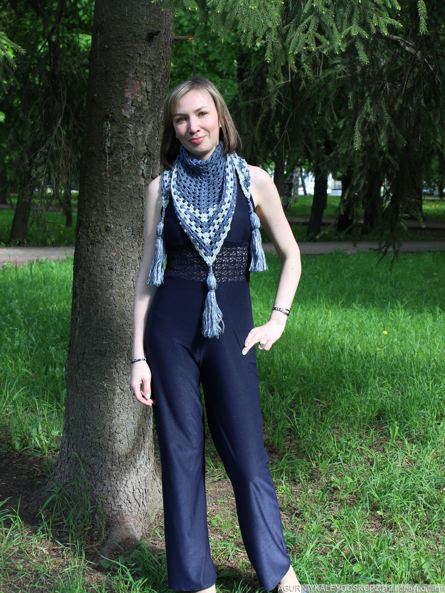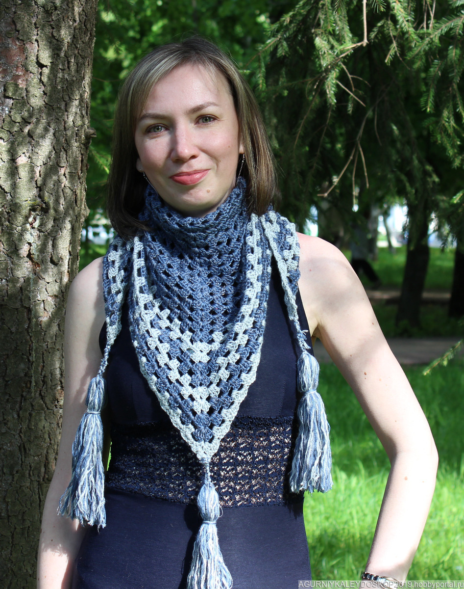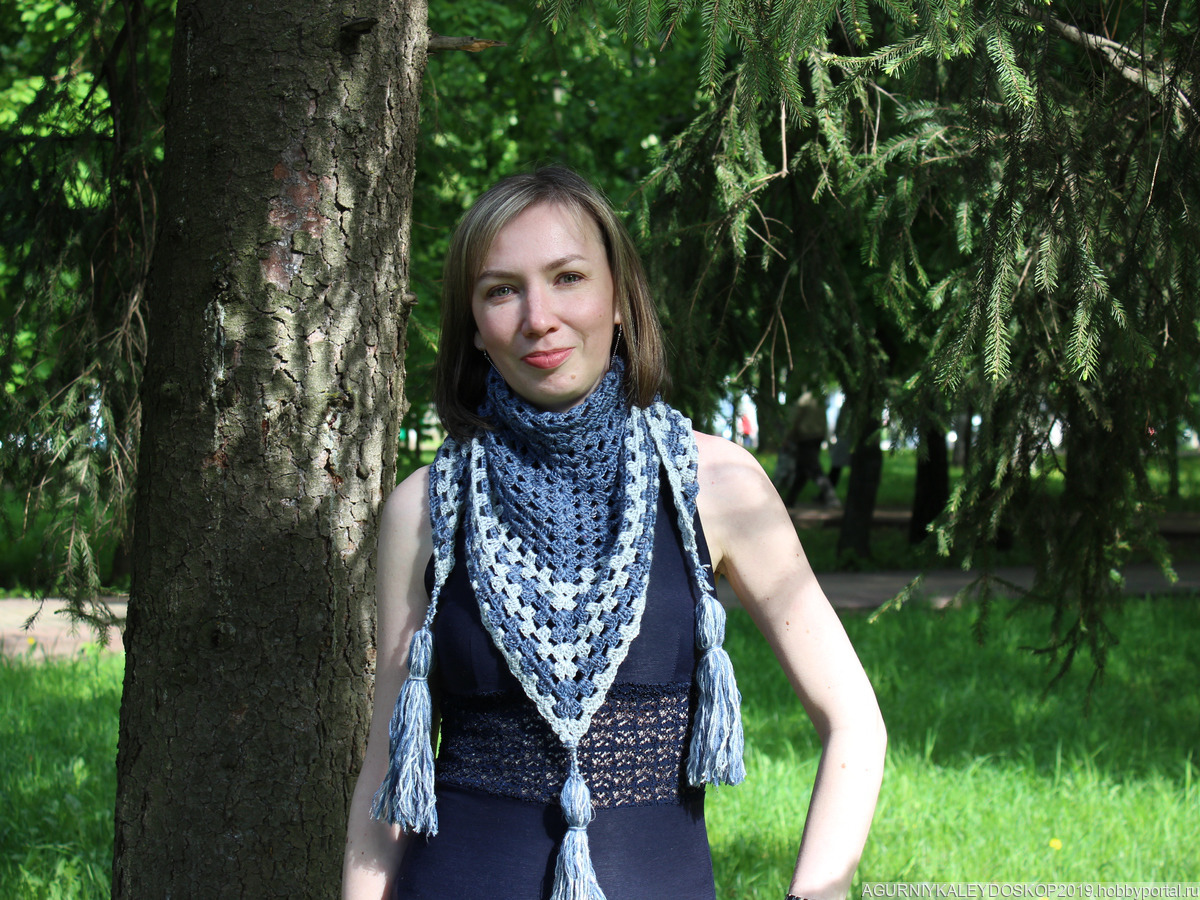 Шаль молодежная "Деним" Продаю шаль из полушерстяных ниток, мягкая и невесомая одновременно! Шаль выполнена из тончайшей пряжи с использованием высококачественных красителей. Очень оригинальная модель с хорош. Подходит для образа с джинсами и прочего...