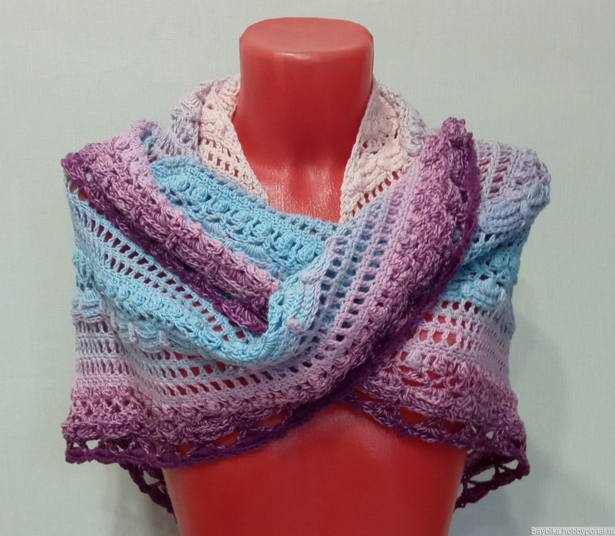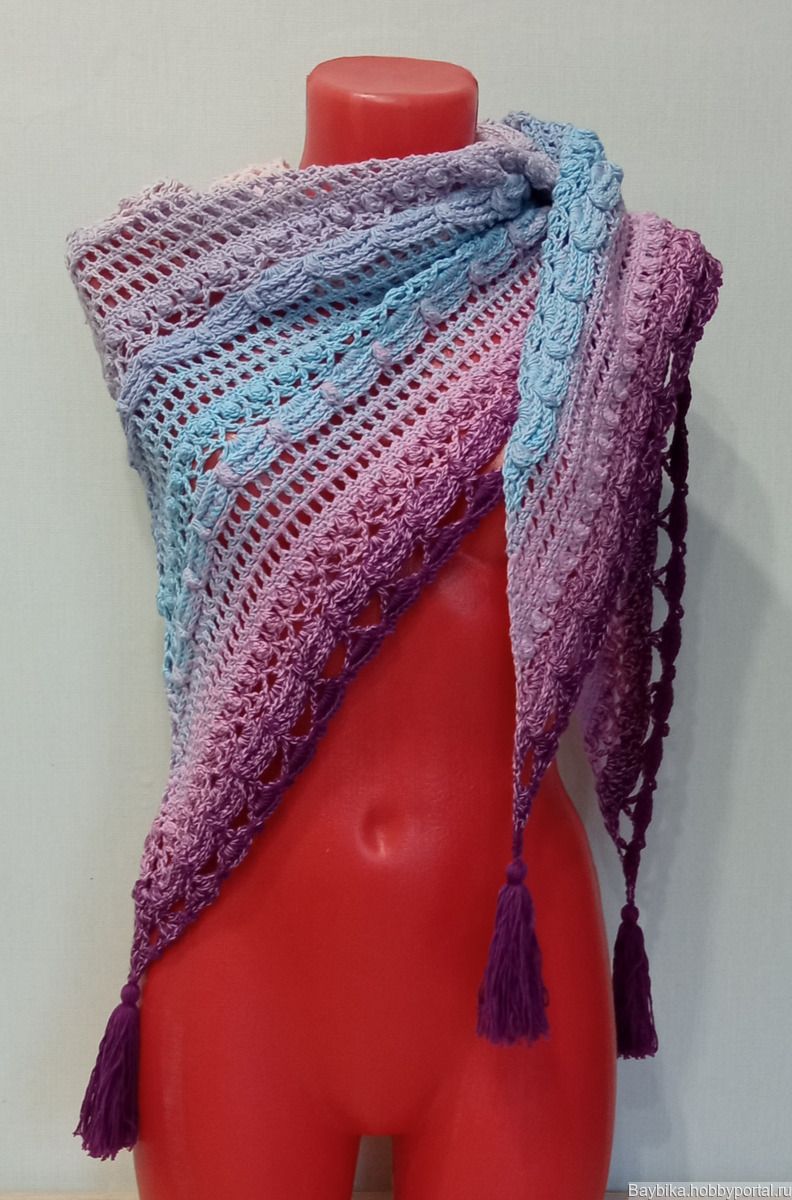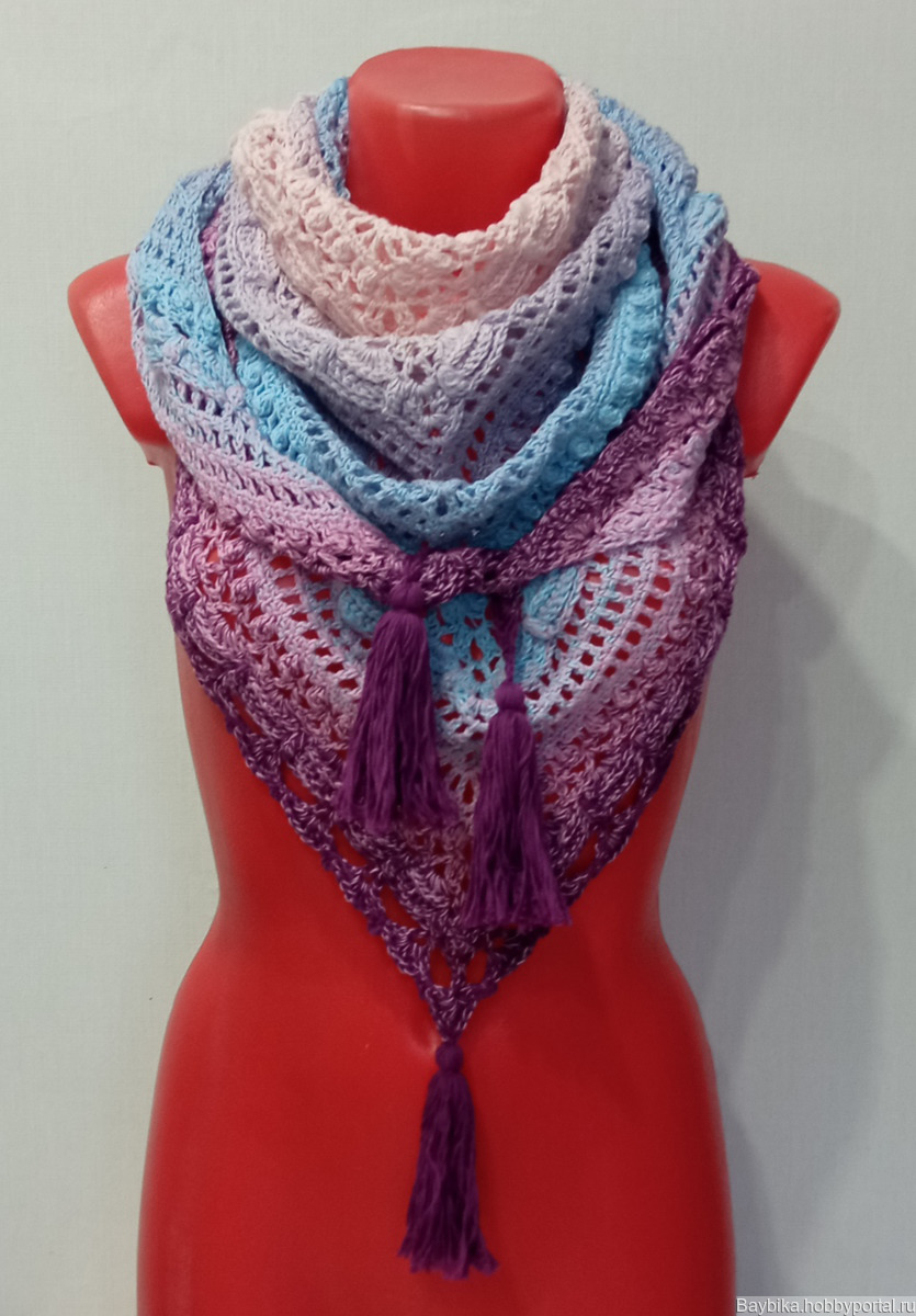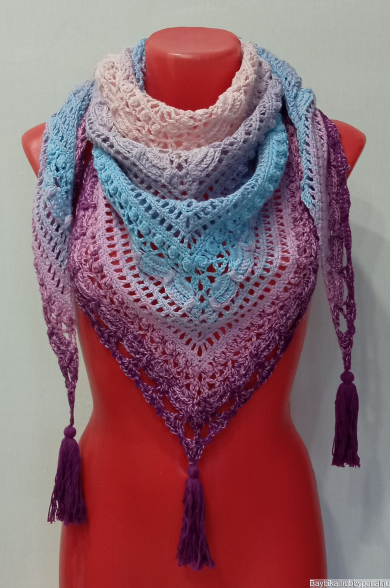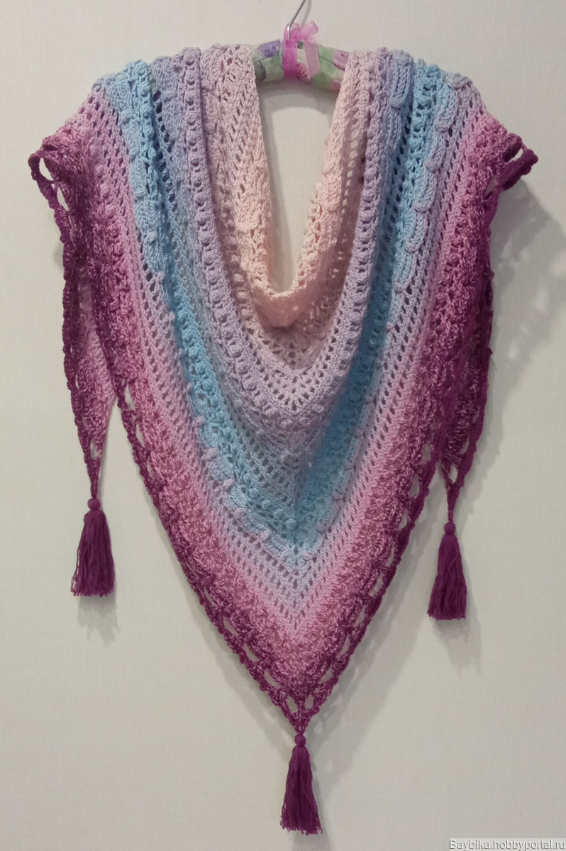 голубой, розовый, подарок на 8 марта, на день рождения, ручное вязание, день святого валентина, платок на шею, связано крючком, летняя шаль, треугольная шаль, наплечье, платок в подарок, подарить вязаную вещь, омбре, купить спб, накинуть на плечи