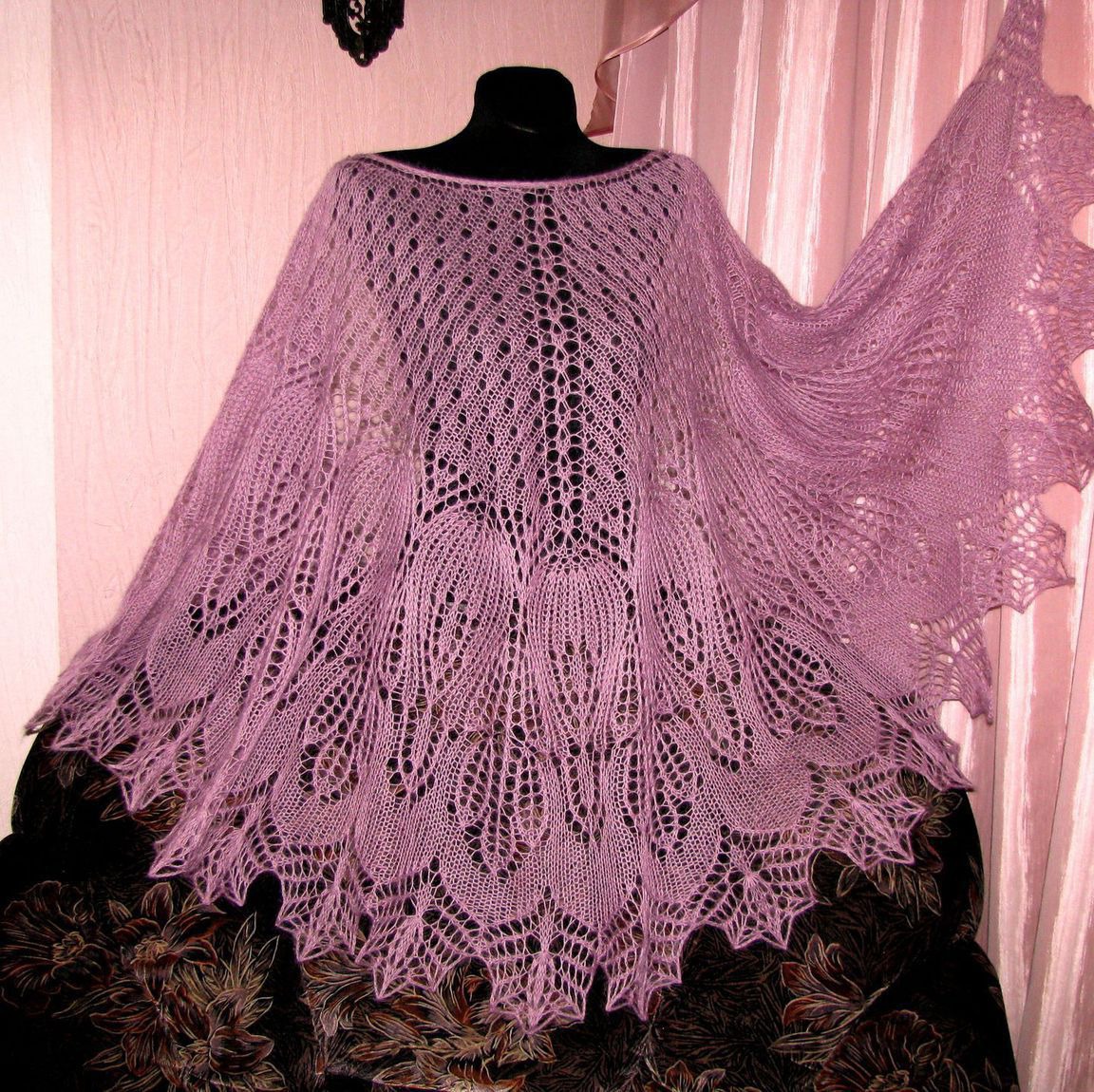 шаль, шаль спицами, подарок на день рождения, подарок маме, подарок девушке, подарок женщине, подарок на 8 марта, шаль ажурная, шаль в подарок, шаль ручная работа, подарок, подарок на любой случай, подарок любимой, подарок сестре, сиреневый, подарок подружке
