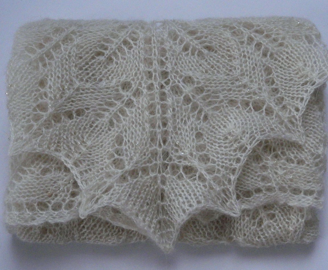 шаль спицами, бежевый, шаль ажурная, пуховая шаль, пух козий