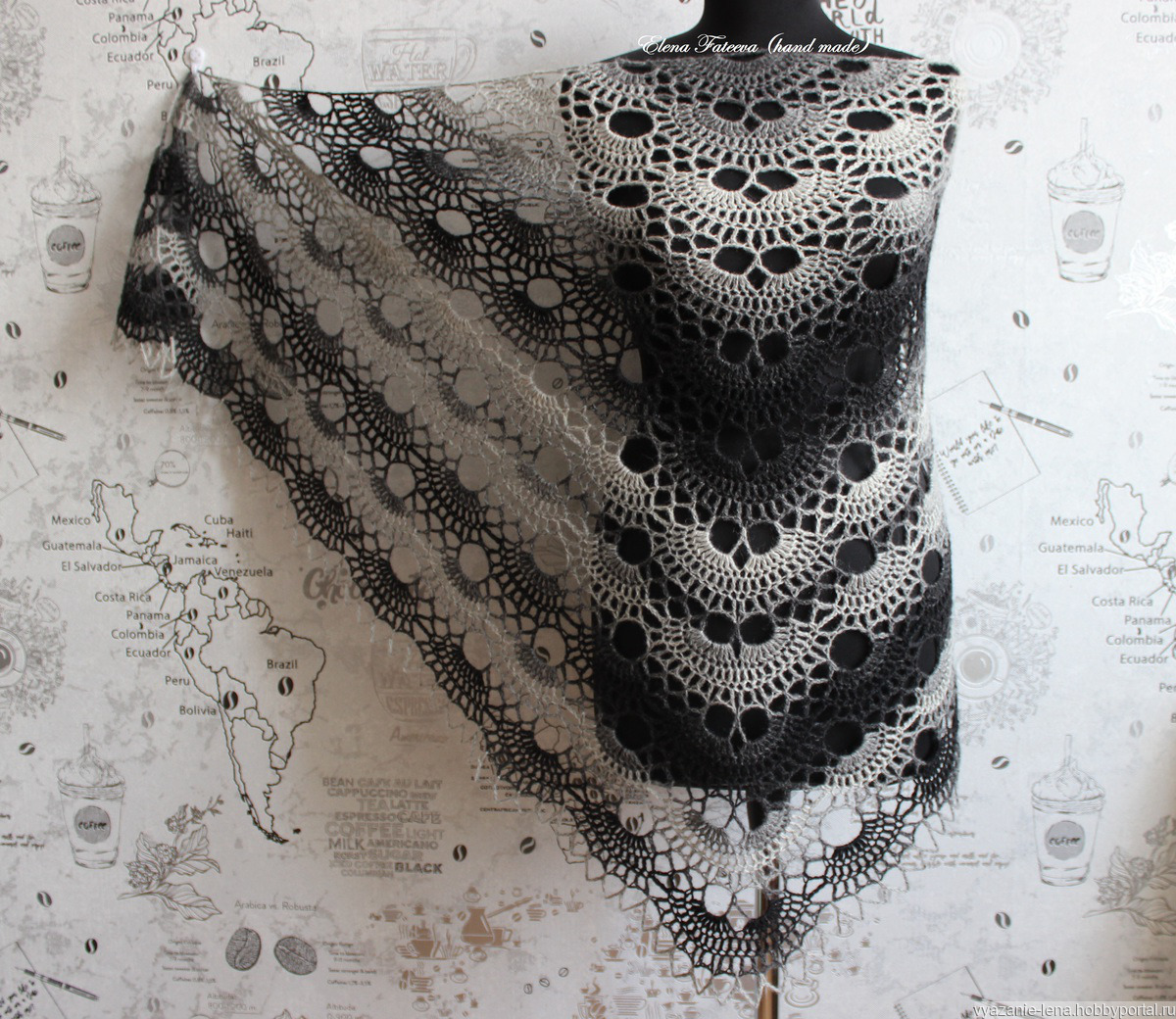вязание на заказ, подарок, шаль крючком, вязание спицами, шаль ручной работы, вязание крючком, теплая шаль, пряжа кауни, шаль ракушка, елена фатеева