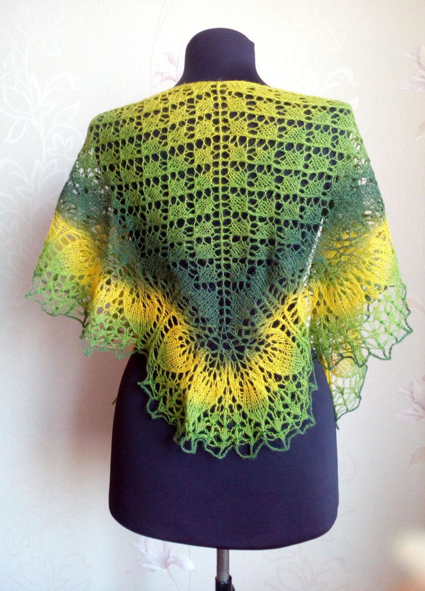 желтый, зелёный, подарок на день рождения, ажур, комбинированный, весна, готовая работа, тепло