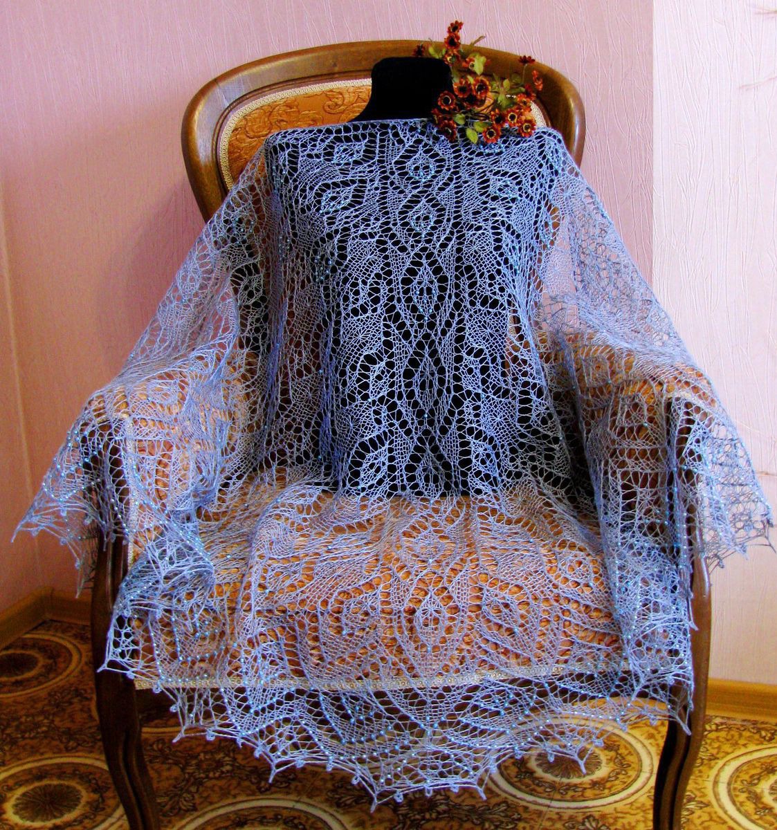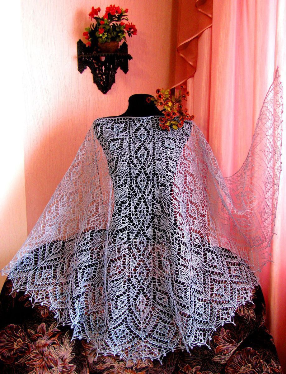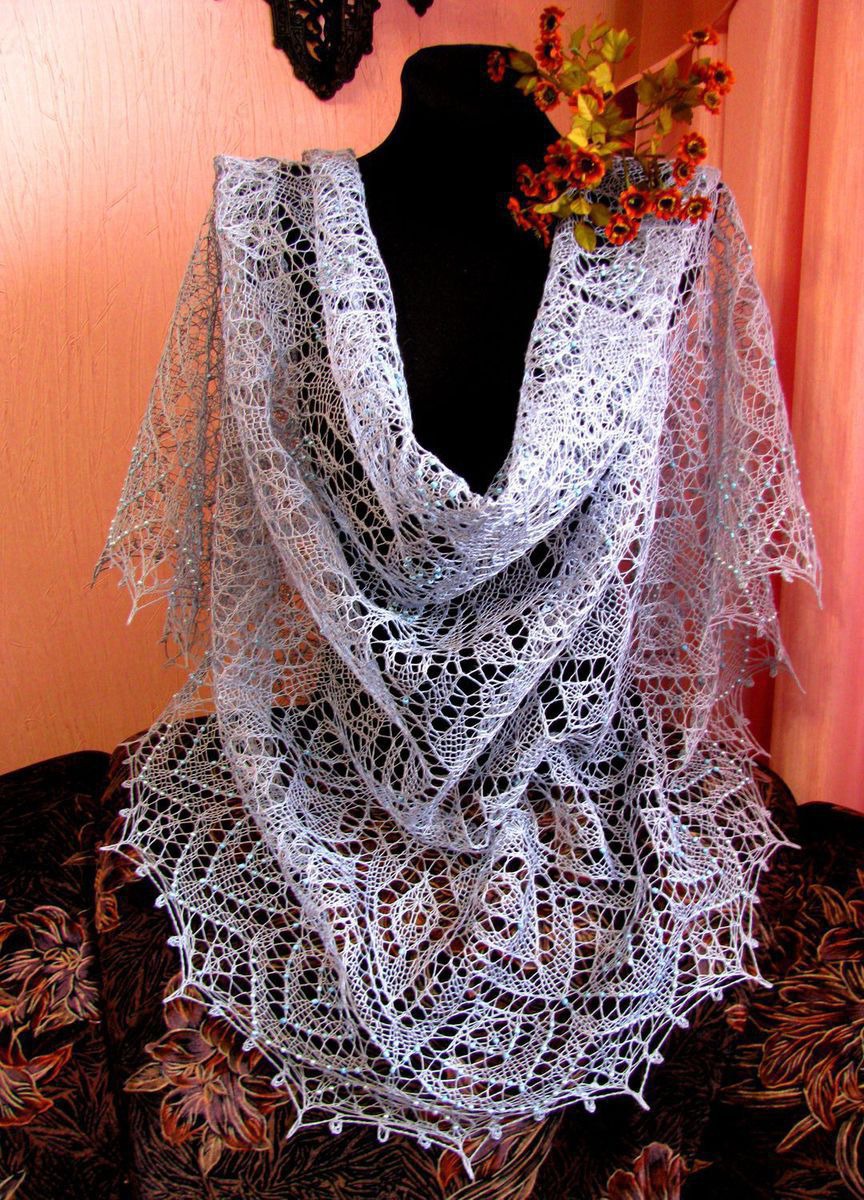Шаль ручной работы с бисером - Селеста.