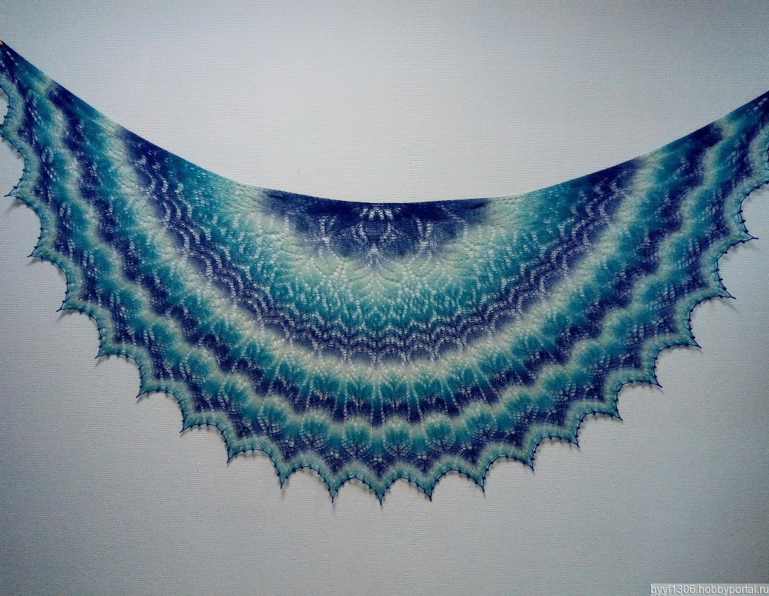 Форма самая удобная, полукруглая, очень хорошо ложится на плечи. За счет своей хорошей длины и тонкой ниточке отлично драпируется, что позволит носить ее в разных вариантах, даже, как платок на голову.