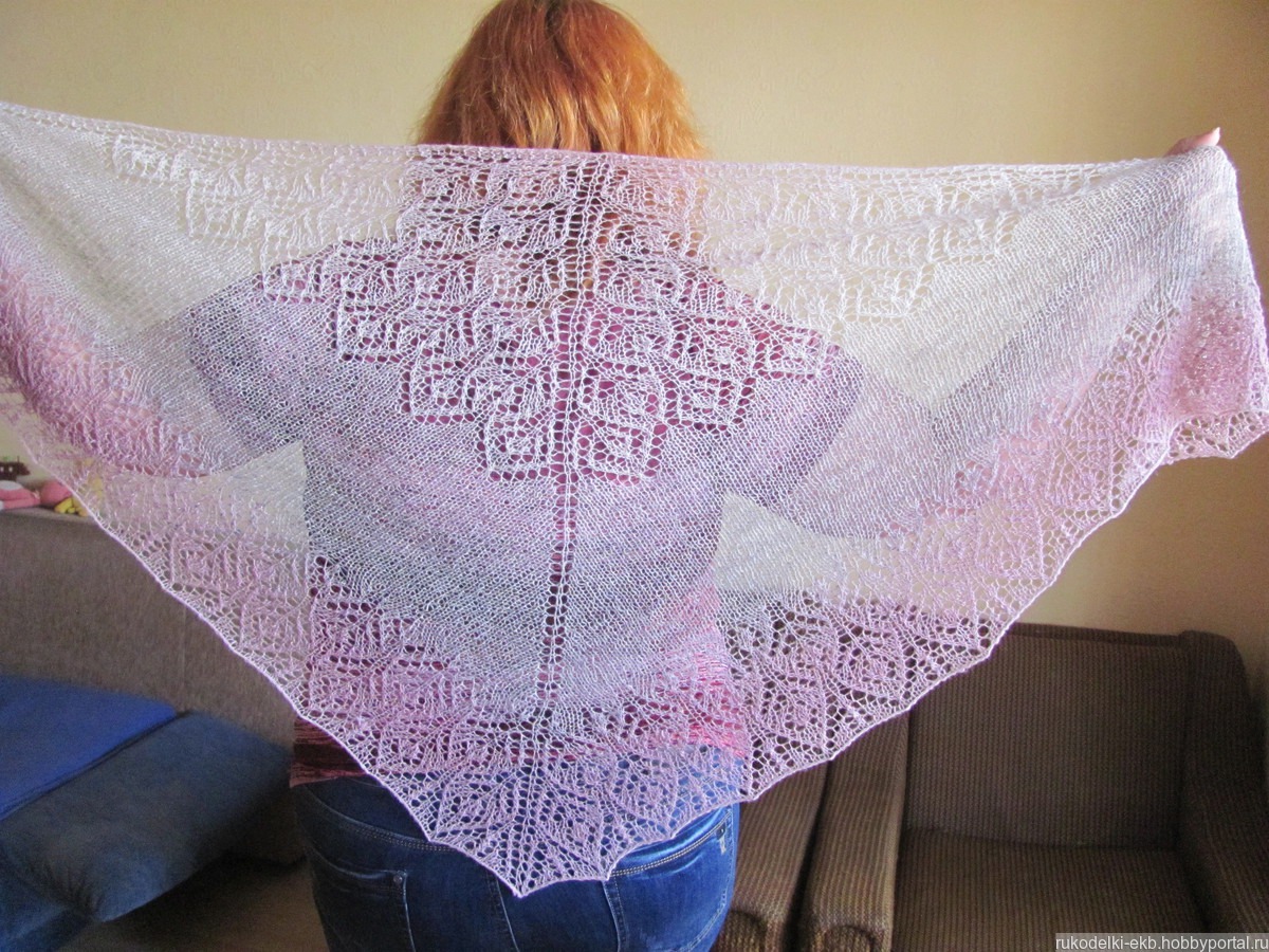 шаль спицами, шаль ажурная, шаль ручная работа, Кауни, 100% шерсть, 100% ручная работа