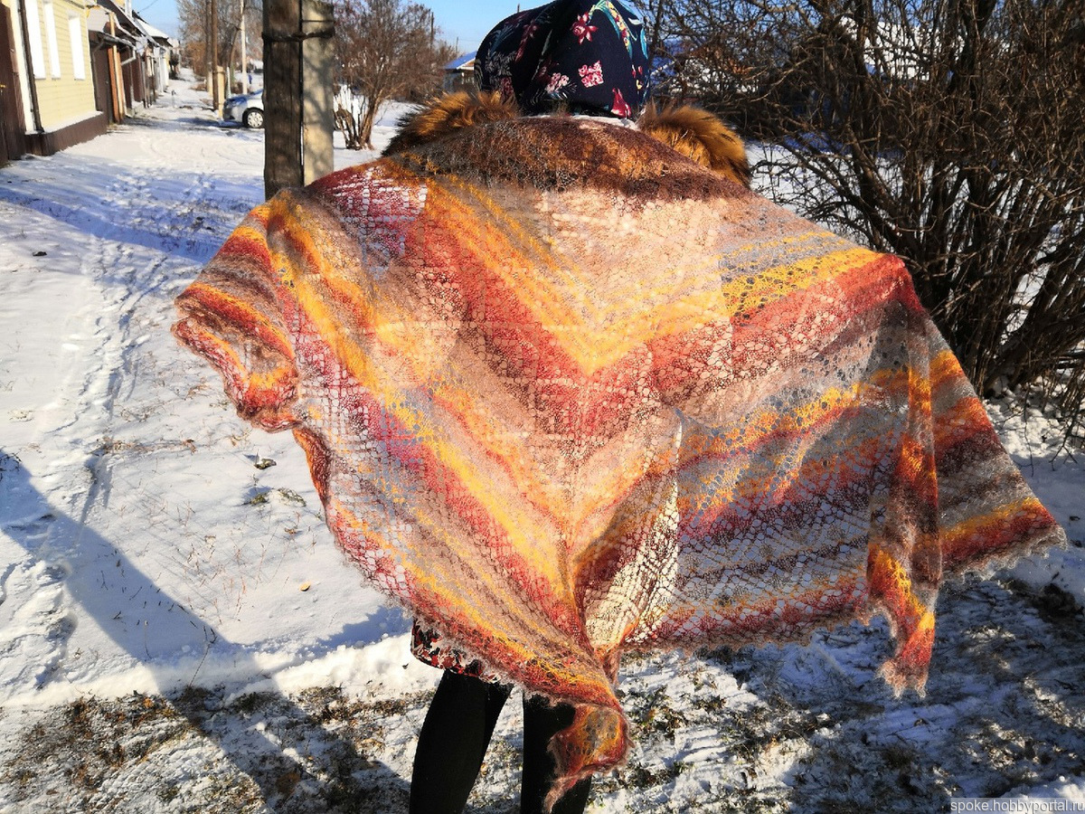 Шаль "Магия цвета" чистошерстяная черного цвета