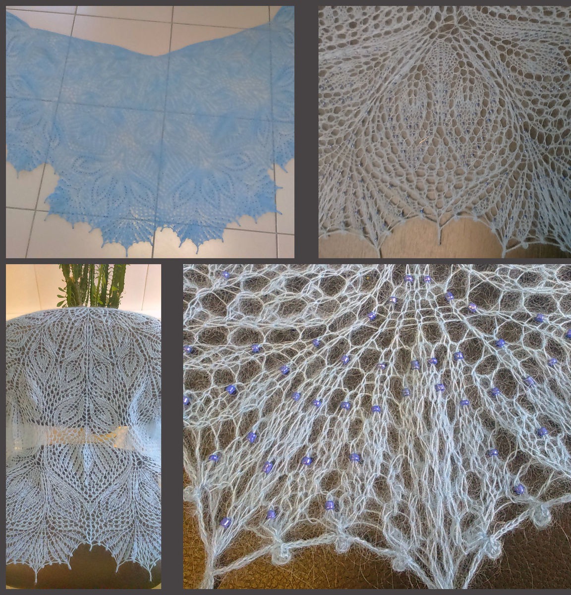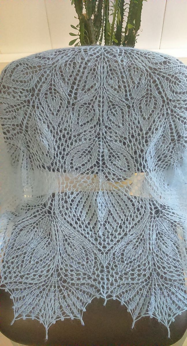 шаль спицами, голубой, шаль в подарок, ажурная шаль, шаль ручной работы