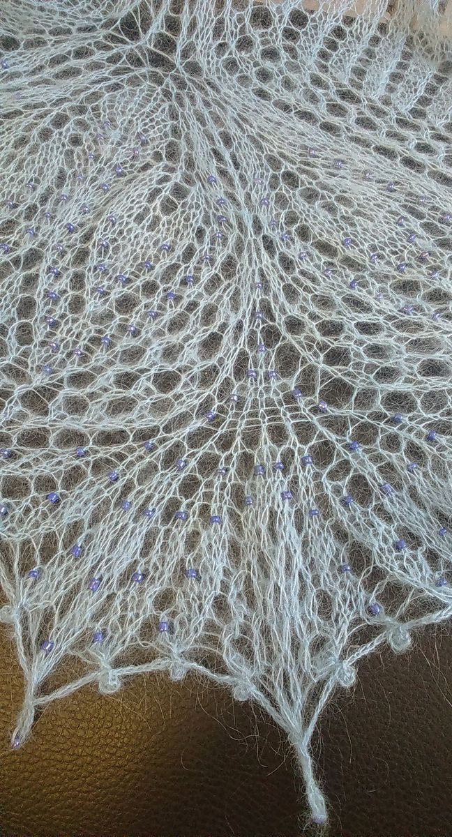 Шаль ручной работы. Легкая ажурная шаль, украшена бисером. Прекрасный аксессуар, украсит и согреет свою хозяйку. Будет шикарным подарком. Вес шали всего 107 гр, из них 30 гр бисера))