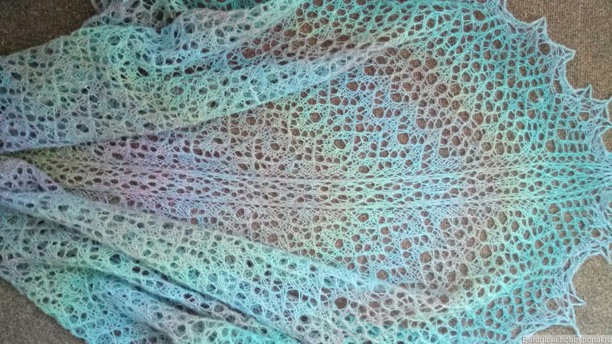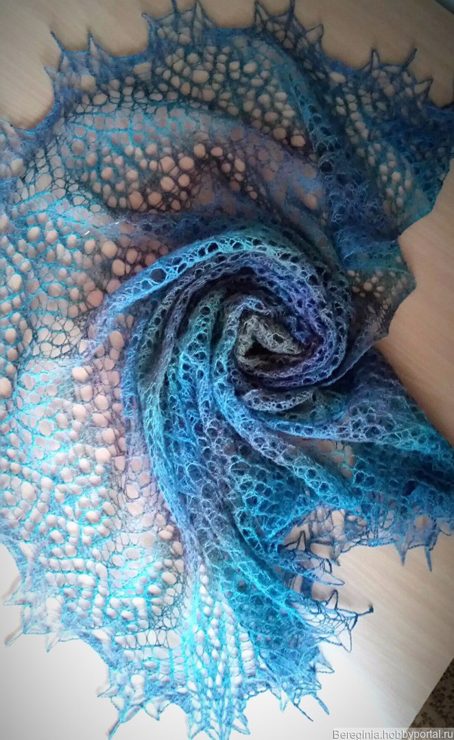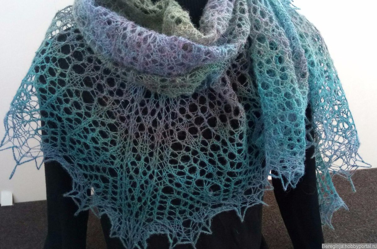 На фото мы видим тончайшую, как она нам представляется, и нежнейшую шаль, которая, несмотря не внешнюю эфемерность, способна неплохо защитить от холода.