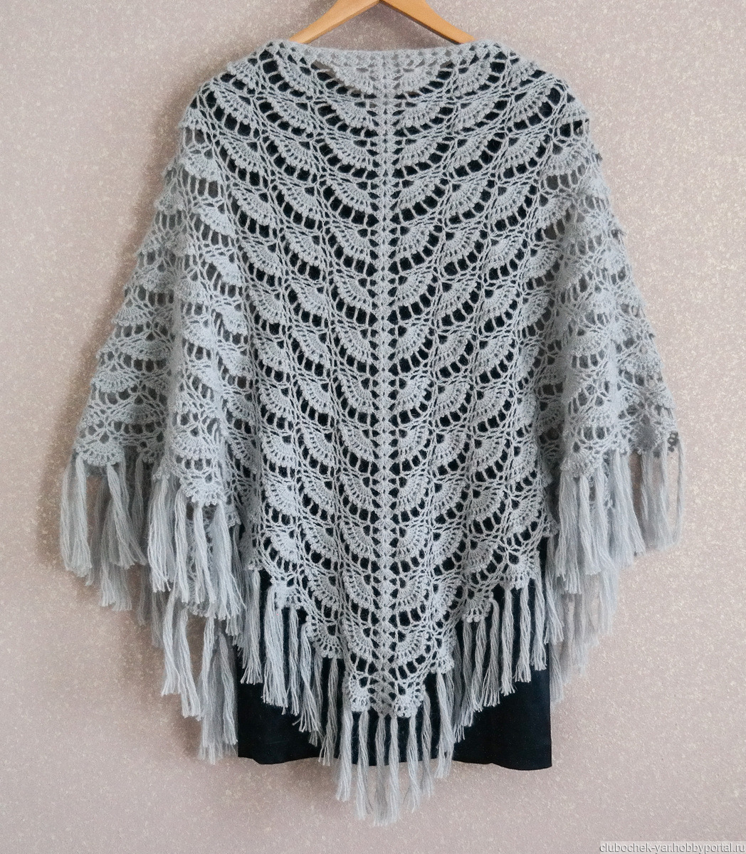 Шаль связана крючком из мохера (60 % мохер, 20 % хлопок, 20 % акрил). Размер ширина 190 см, высота 85 см без учета кистей. Большая, теплая , уютная шаль, прекрасный подарок себе и близким.