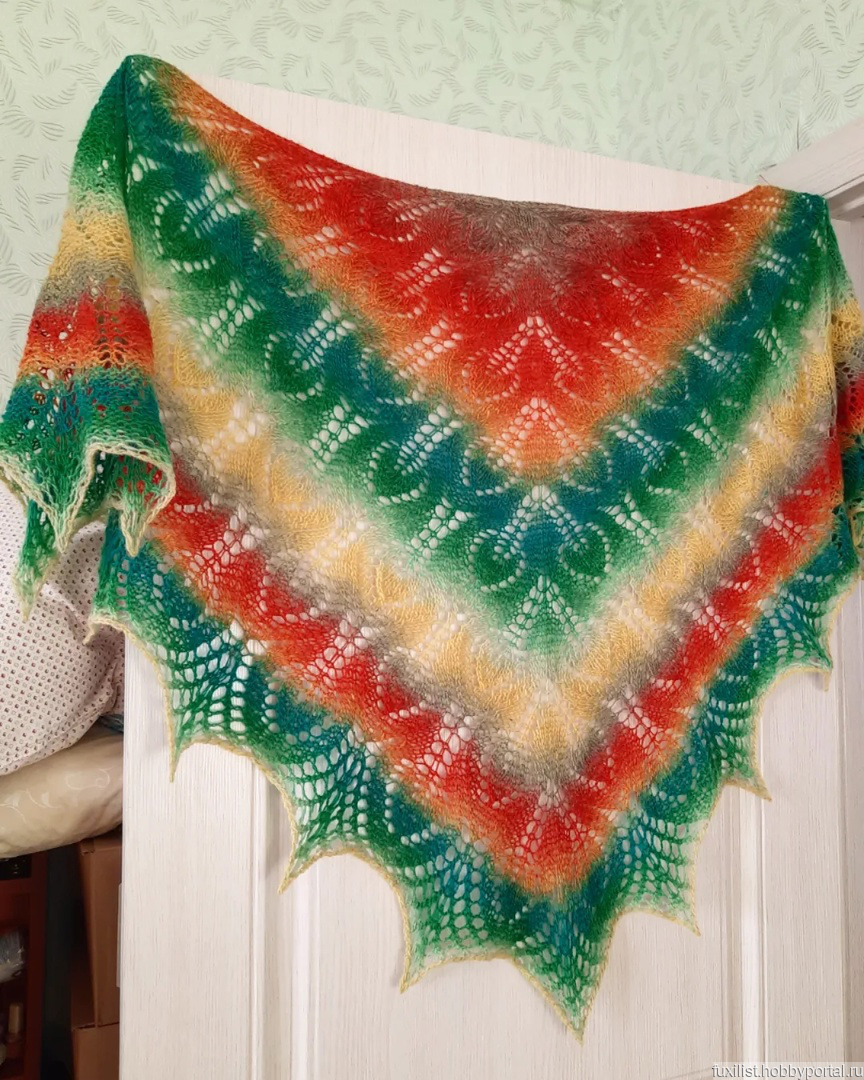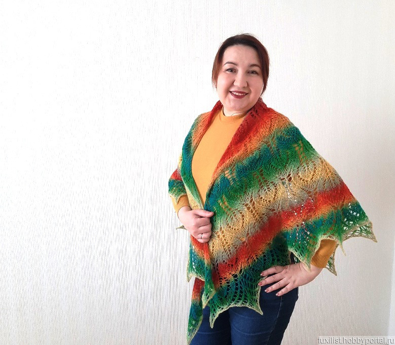 шаль спицами, вязание на заказ, радуга, шаль в подарок, ажурная шаль, ручная работа handmade, шаль из шерсти, ручная вязка, вязаная шаль, теплая шаль, радужная шаль, яркая шаль, осенняя шаль, дундага шаль, теплая шаль из шерсти, платок шерстяной вязаный, оранжевая яркая шаль, солнечная шаль