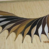 Вязаные изделия стирают вручную. Температура воды должна быть не более 30-40 градусов, иначе изделия из шерсти могут дать сильную усадку. Стирают с добавлением специальных моющих средств, предназначенных для стирки шерстяных изделий, наилучший вариант - жидких. Сушат вязаные шерстяные вещи в разложенном виде на ровной горизонтальной поверхности. Раскладываете шаль на подготовленной поверхности, слегка(!) растягивая ее и придавая ей желаемую форму, обеспечивая симметрию всего полотна и стабильность размеров одинаковых фрагментов шали (ширина раппорта, высота листочка и т.п.). Шаль должна высохнуть в таком положении. Надежнее всего оставить ее на ночь. Обычно вязаные вещи хранят в сложенном виде на полке в шкафу. Не рекомендуется вешать вязаные изделия на плечики. Но, как показывает практика, лучший вариант - в мешочке на вешалке. Так обеспечивается доступ воздуха со всех сторон.