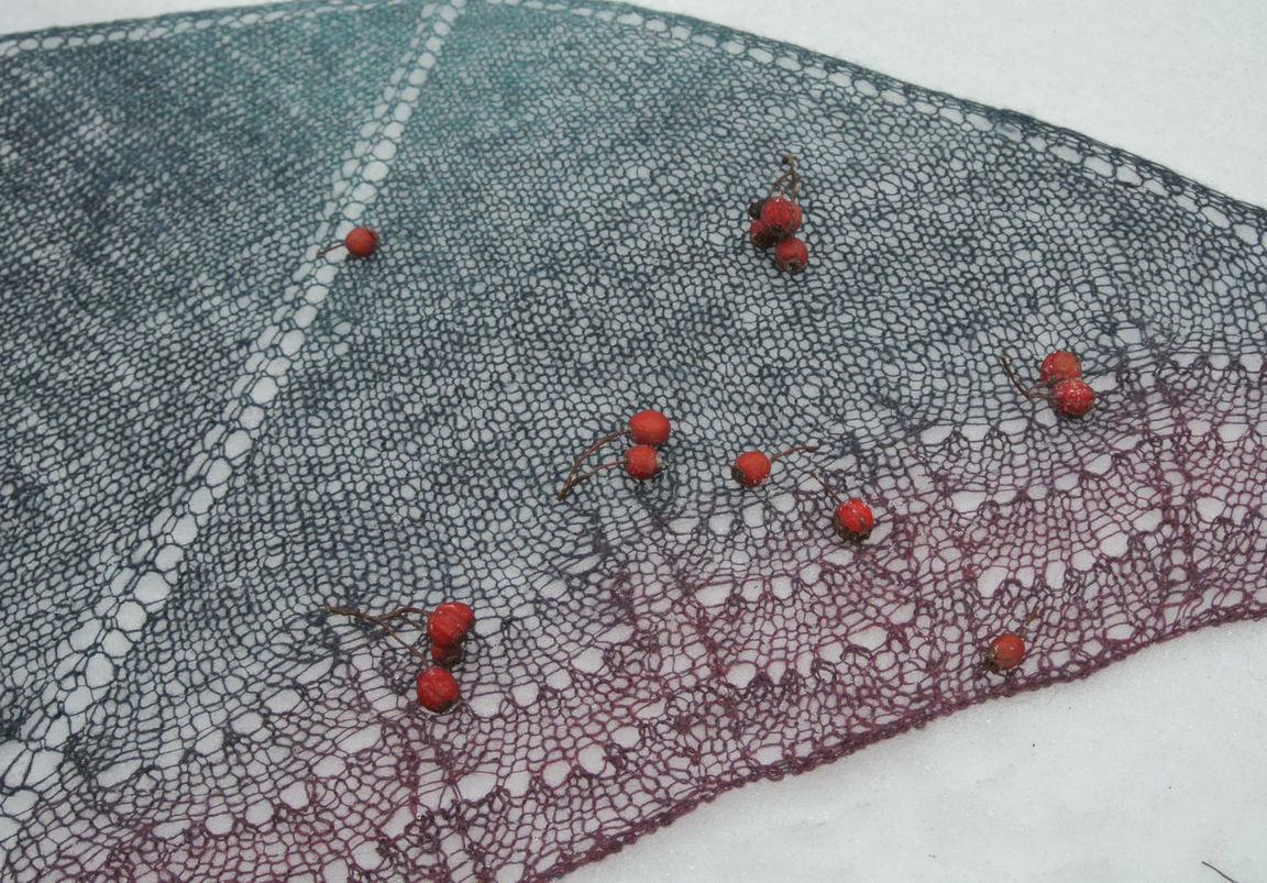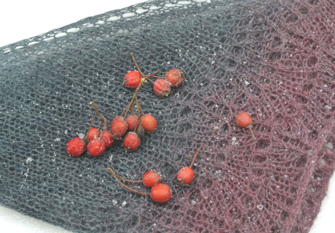 Шаль не очень большого размера, что делает ее универсальной в носке. Можно носить традиционно на плечах, можно как бактус или снуд поверх куртки или пальто.