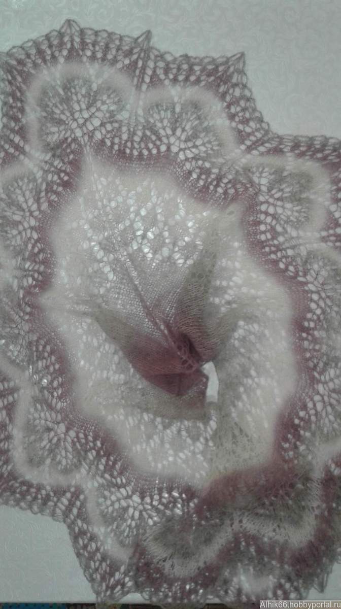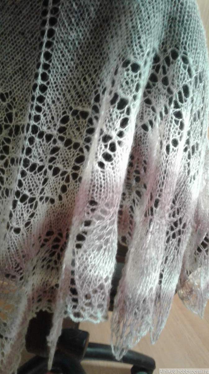 Шаль связана из 100%овечьей шерсти Кауни.Шаль треугольной формы.