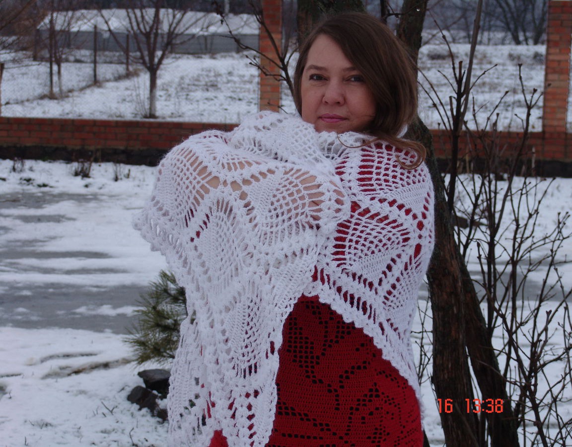 Воздушная ,легкая и нежная , она может быть вашей. Укроет вас белым облаком , тепла и комфорта. Связана из качественной мягкой пряжи. Будет не заменима зимой.