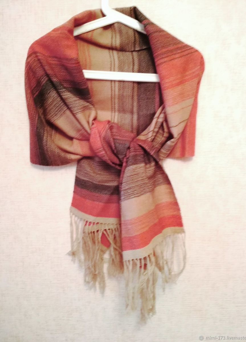 подарок на новый год, ручная работа, подарок, комбинированный, шерсть 100%, тканый палантин, модные цвета осени