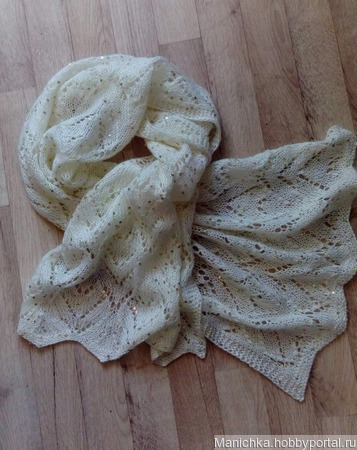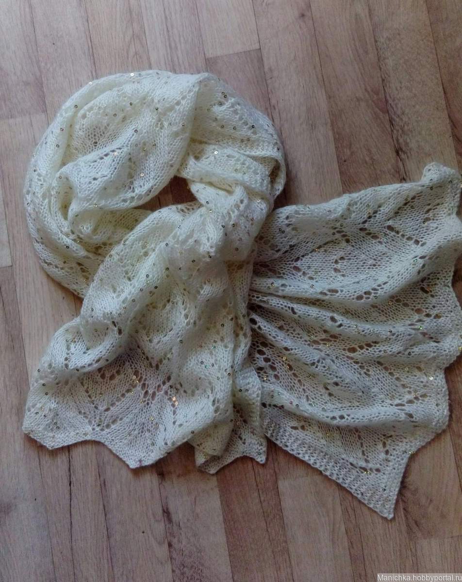 Вязанный спицами палантин с поедками, нежный и теплый! Прекрасно дополнит ваш очаровательный образ, украсит вечерний наряд и согреет вас!