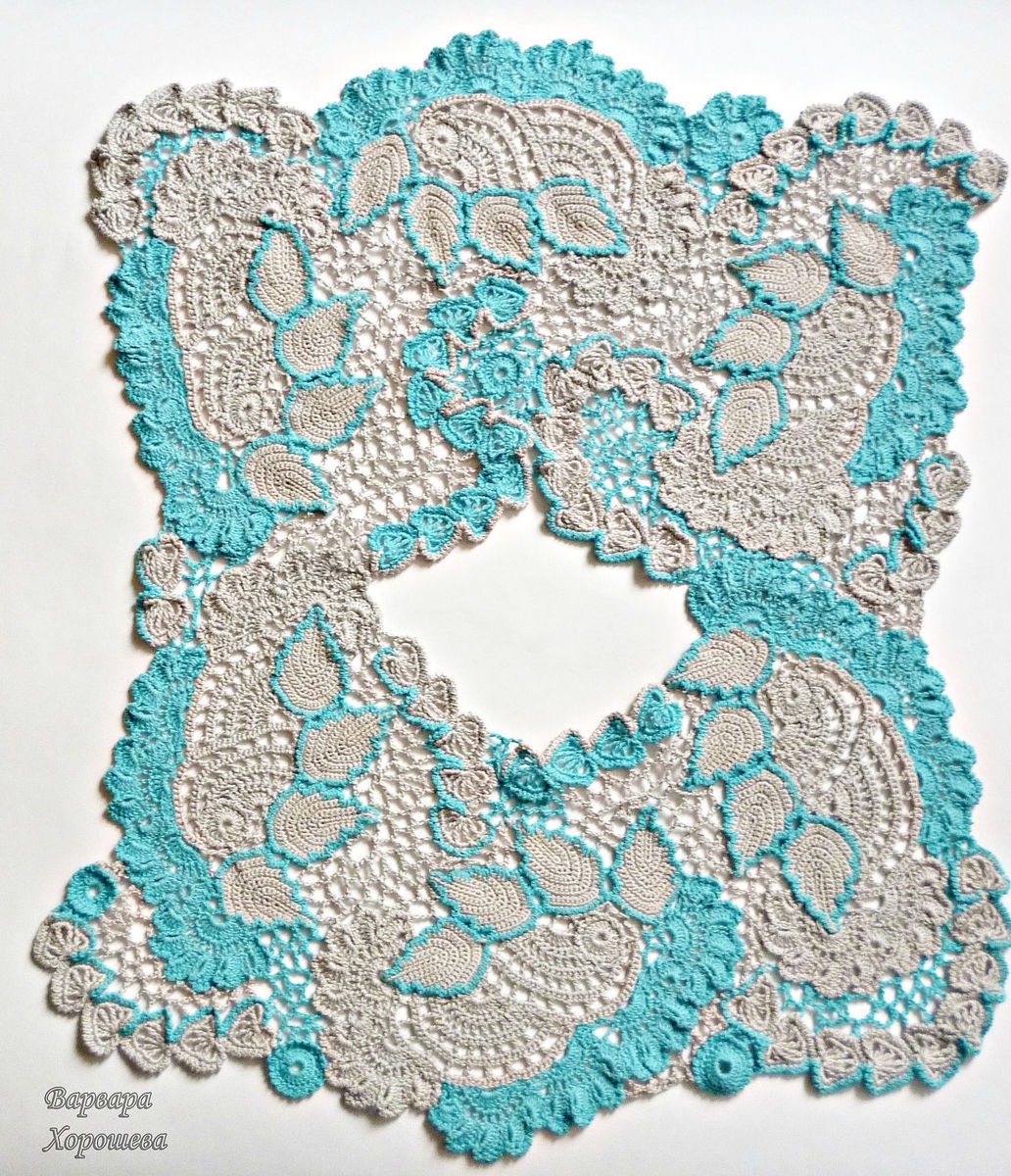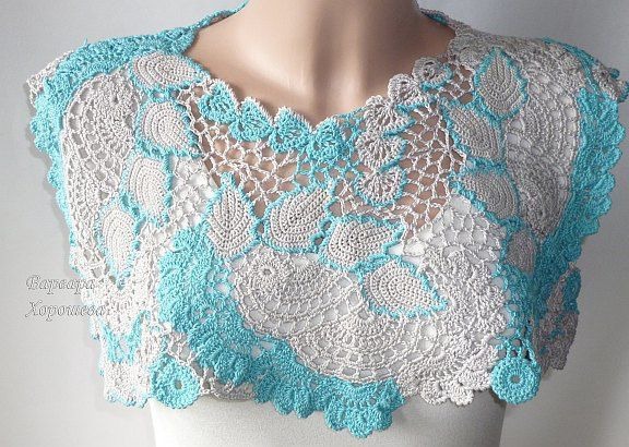 Накидка связана крючком в технике наборного кружева.