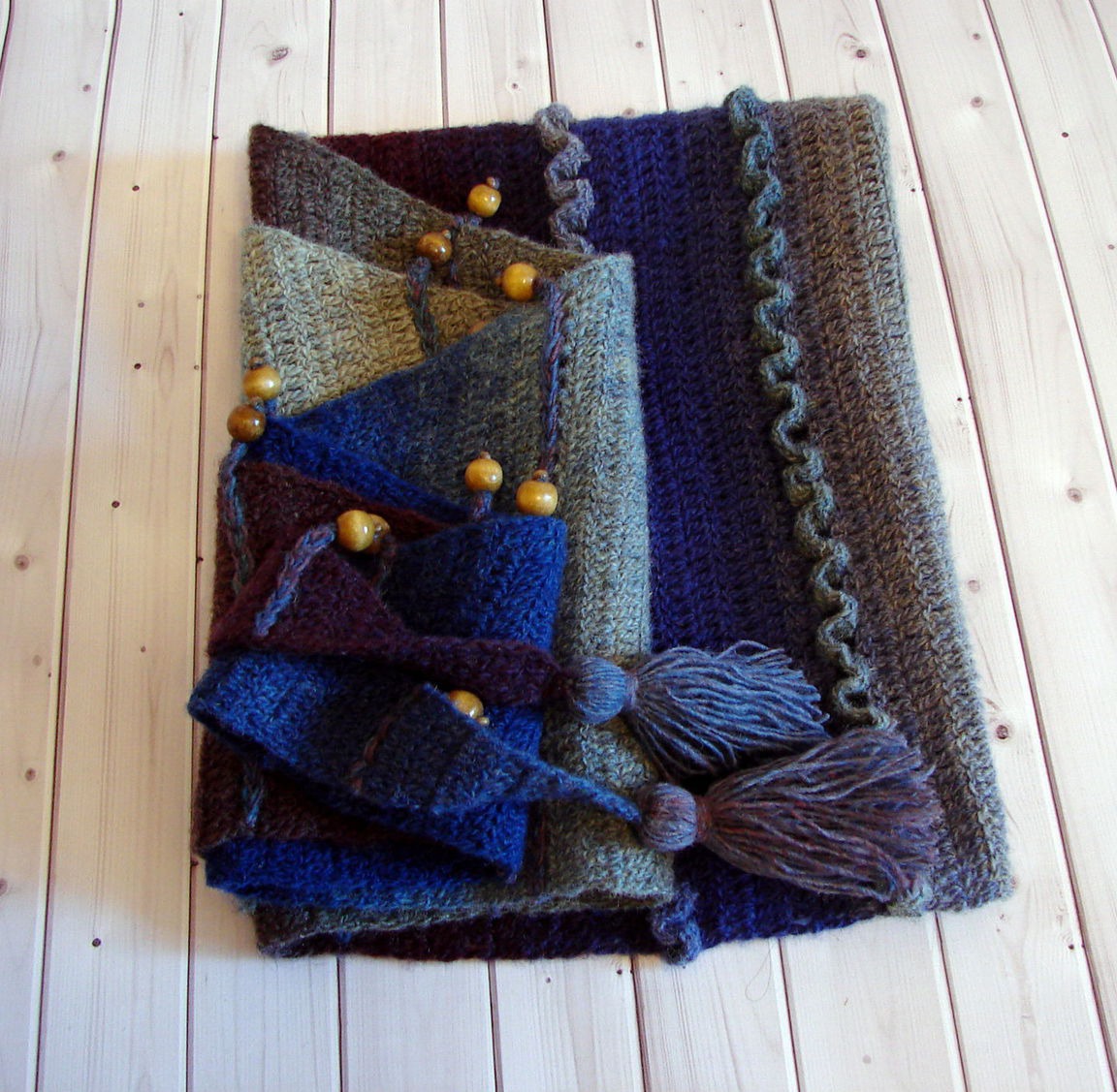 бактус, шерсть 100%, бактус вязаный, косынка вязаная, морской пейзаж, вязаный бактус, шарф с кистями, разноцветный шарф, полосатый шарф, бактус с кистями, модный вязаный шарф, шарф в полоску, синие дали, шейный платок вязаный, косынка с кисточками, вязаный полосатый бактус, заказать модный бактус, синий серый коричневый, туманнный берег, река туман берег