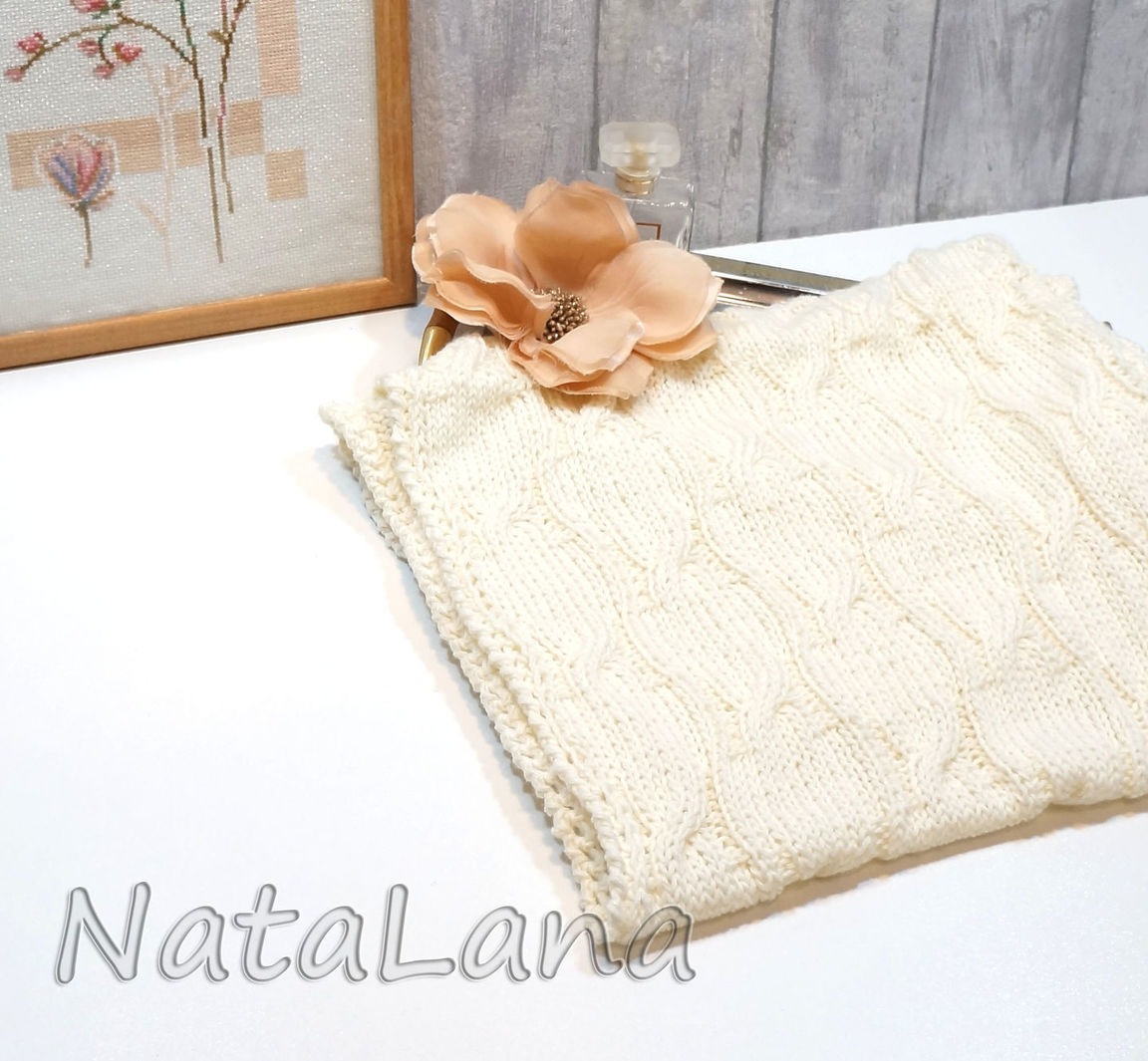 Красивый, теплый, очень приятный на ощупь снуд связан из пряжи, в состав которой входит высококачественная мериносовая шерсть.