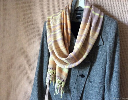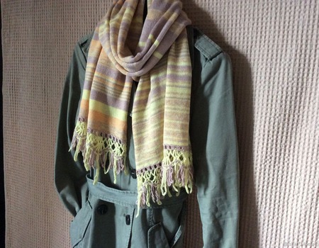 авторская работа, подарок женщине, купить шарф женский, купить шарф вязаный, шарф в полоску вязаный, шарф в пастельных цветах, лимонный коралловый сиреневый, Шарф москва, шарф в единственном экземпляре