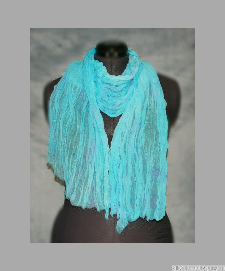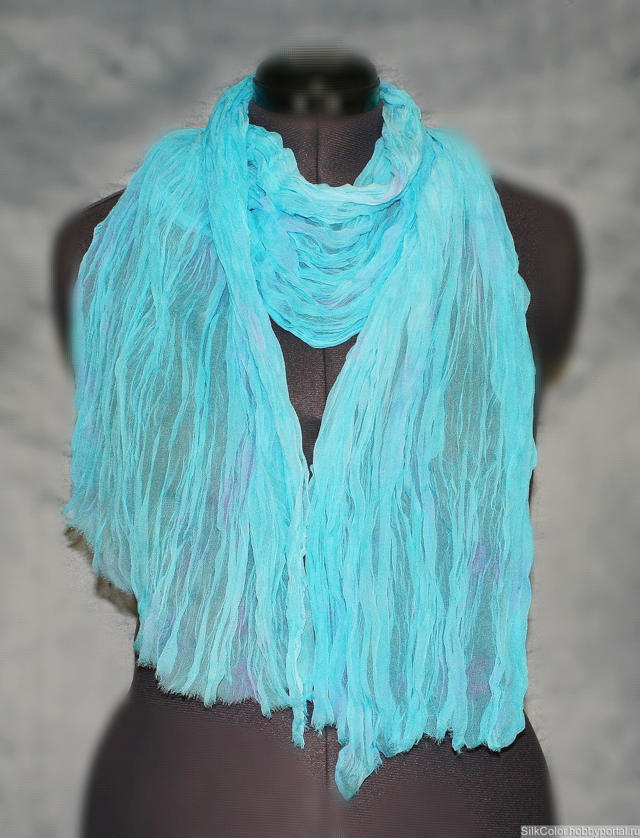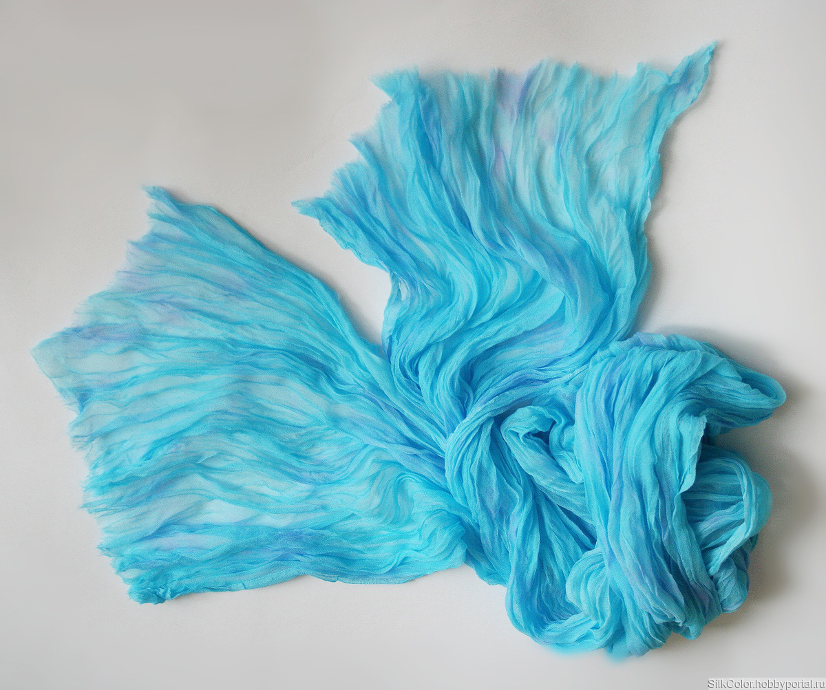 Окрашен способом ШИБОРИ КРАСИТЕЛЯМИ по ШЁЛКУ, ЗАКРЕПЛЕНЫ ПАРОМ .