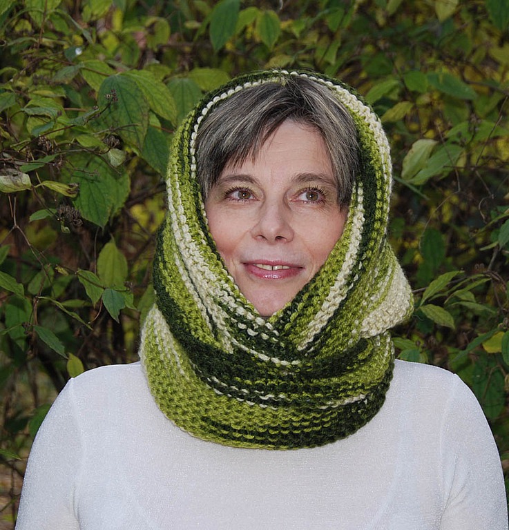 А этот меланжевый снуд в зеленых тонах улучшит вам настроение в пасмурный весенний,осенний или в заснеженный зимний день!