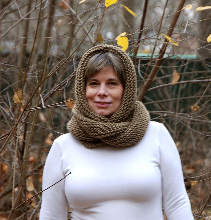 А этот полушерстяной меланжевый снуд бежево-коричневого цвета с золотистым отливом, связанный из толстой пряжи, улучшит вам настроение в пасмурный весенний, осенний или в заснеженный зимний день!