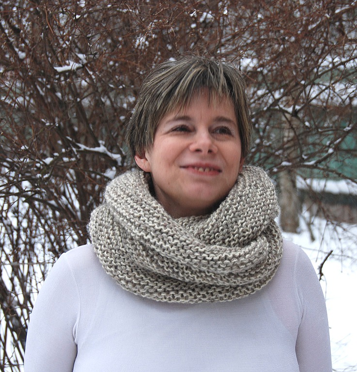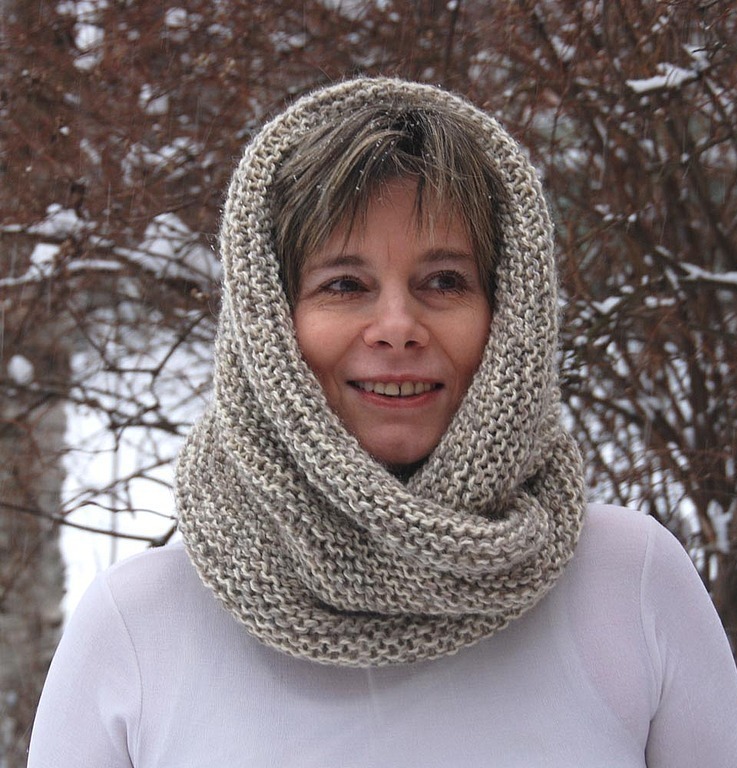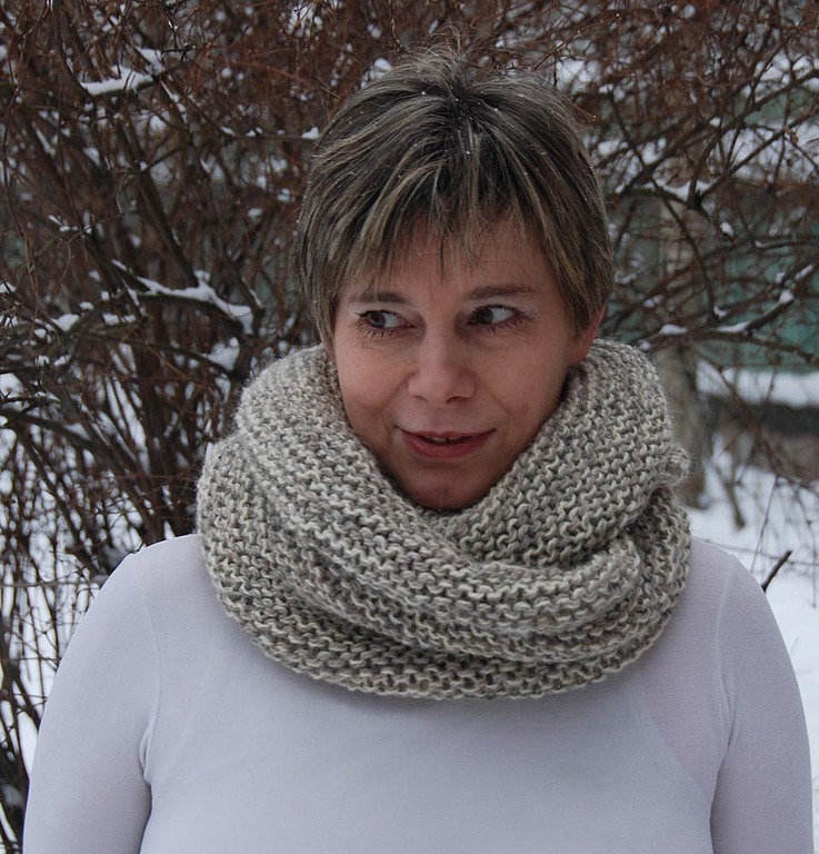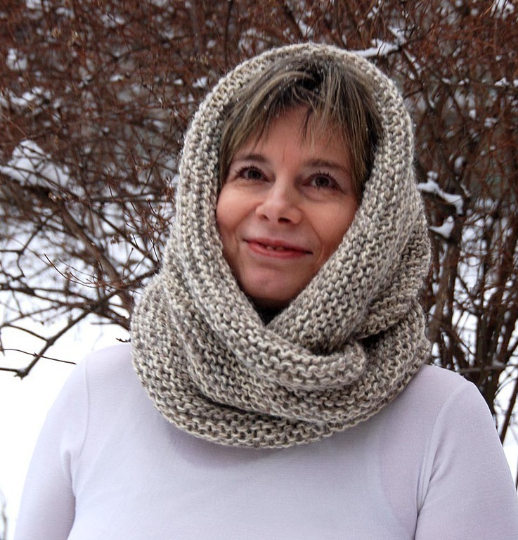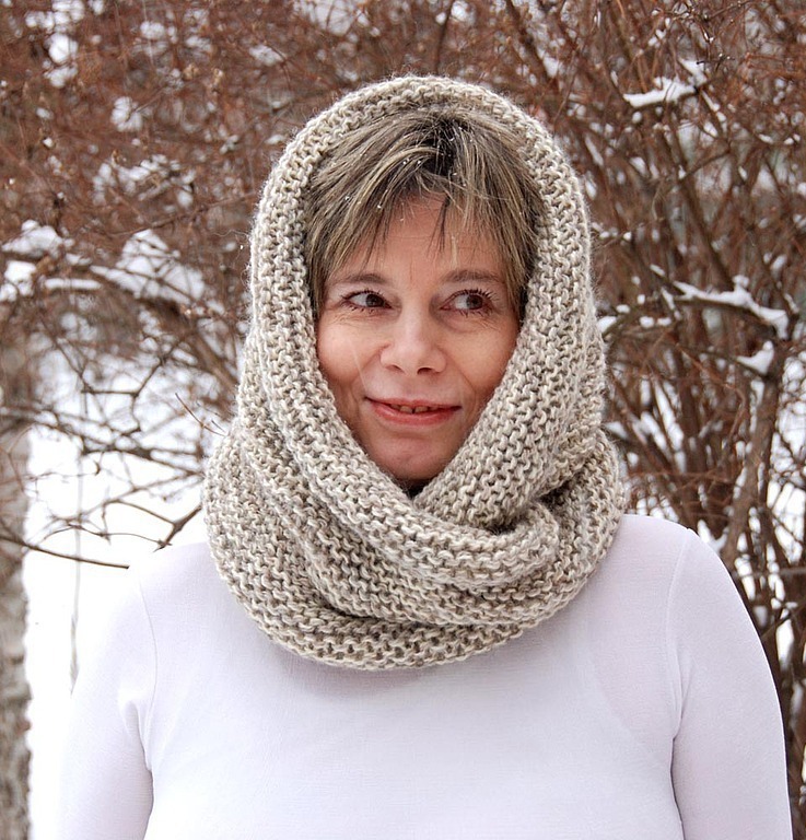 А этот снуд- меланжевый серо-белого цвета улучшит вам настроение в пасмурный весенний, осенний или в заснеженный зимний день!