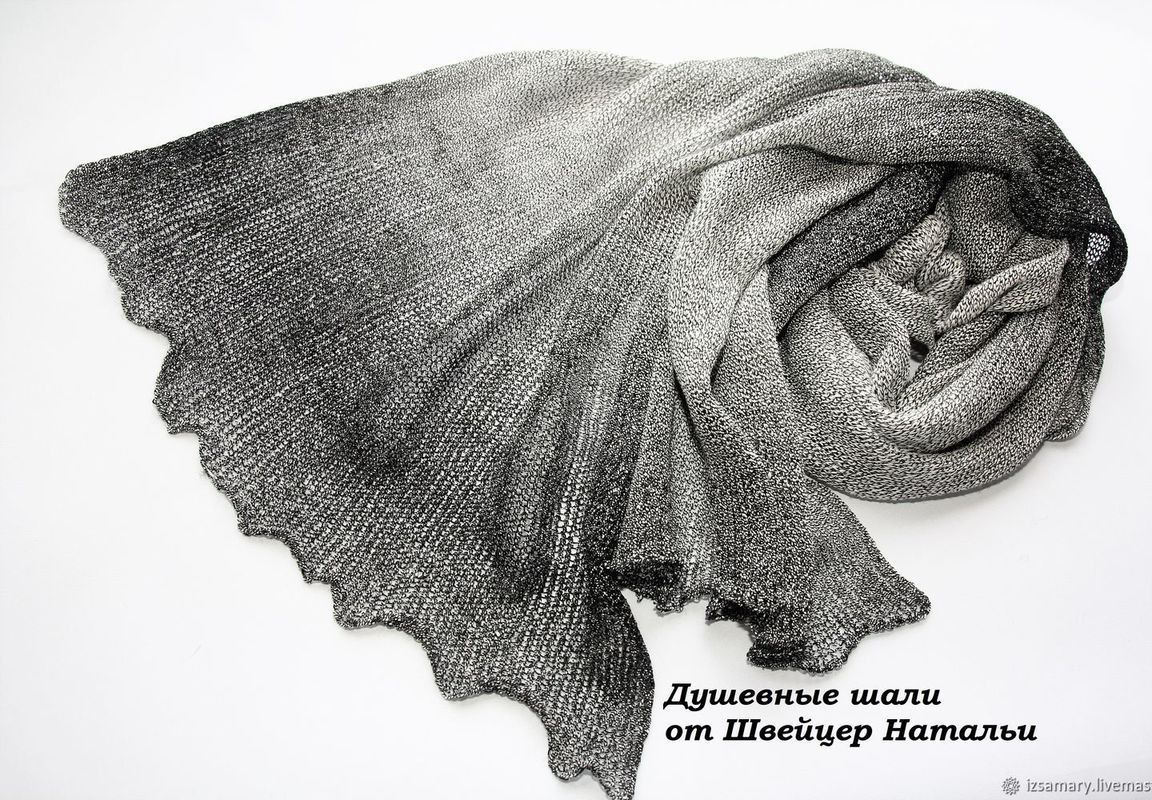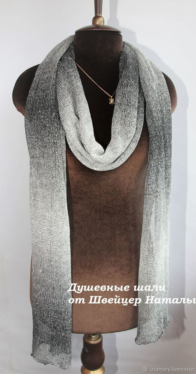 Очень красивый льняной шарф с эффектом Деграде от черного к белому. Связан из самой лучшей пряжи для лета - 100% итальянского льна редчайшей расцветки.