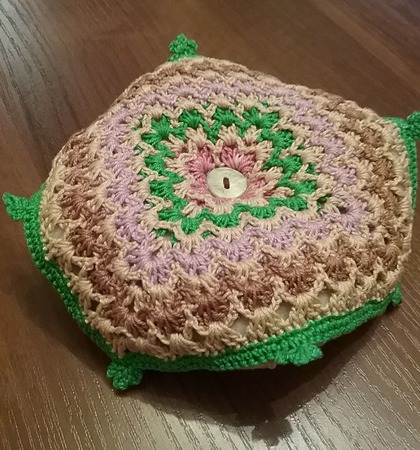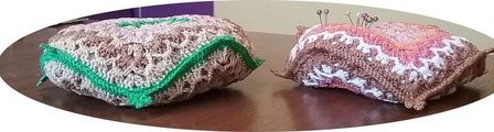 В центре подушечки с двух сторон - пуговички, изготовленные из натуральной ракушки.