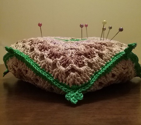 Предлагаю вам яркую бискорню - декоративную подушечку, выполняющую функцию игольницы.