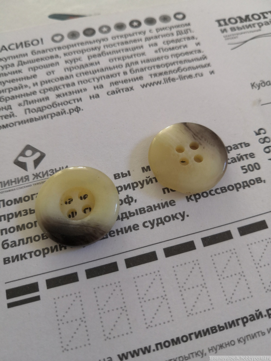 Плоские пуговицы цвета кости с четырьмя дырочками