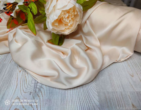 Ткань Шелк Армани имеет удивительно нежную и нестандартную фактуру, что отличает его от натурального шелка. Он более бархатистый и не скользит в руках. Блеск шелка Армани еле заметный и скорее матовый. В процессе производства ткани используется эластан, поэтому ткань может поперечно растягиваться. Что шьют их шелка Армани ? Просто невероятно красивые платья и шикарные брюки получаются из этой ткани. Также из него шьют подкладки для другой одежды из дорогой ткани.