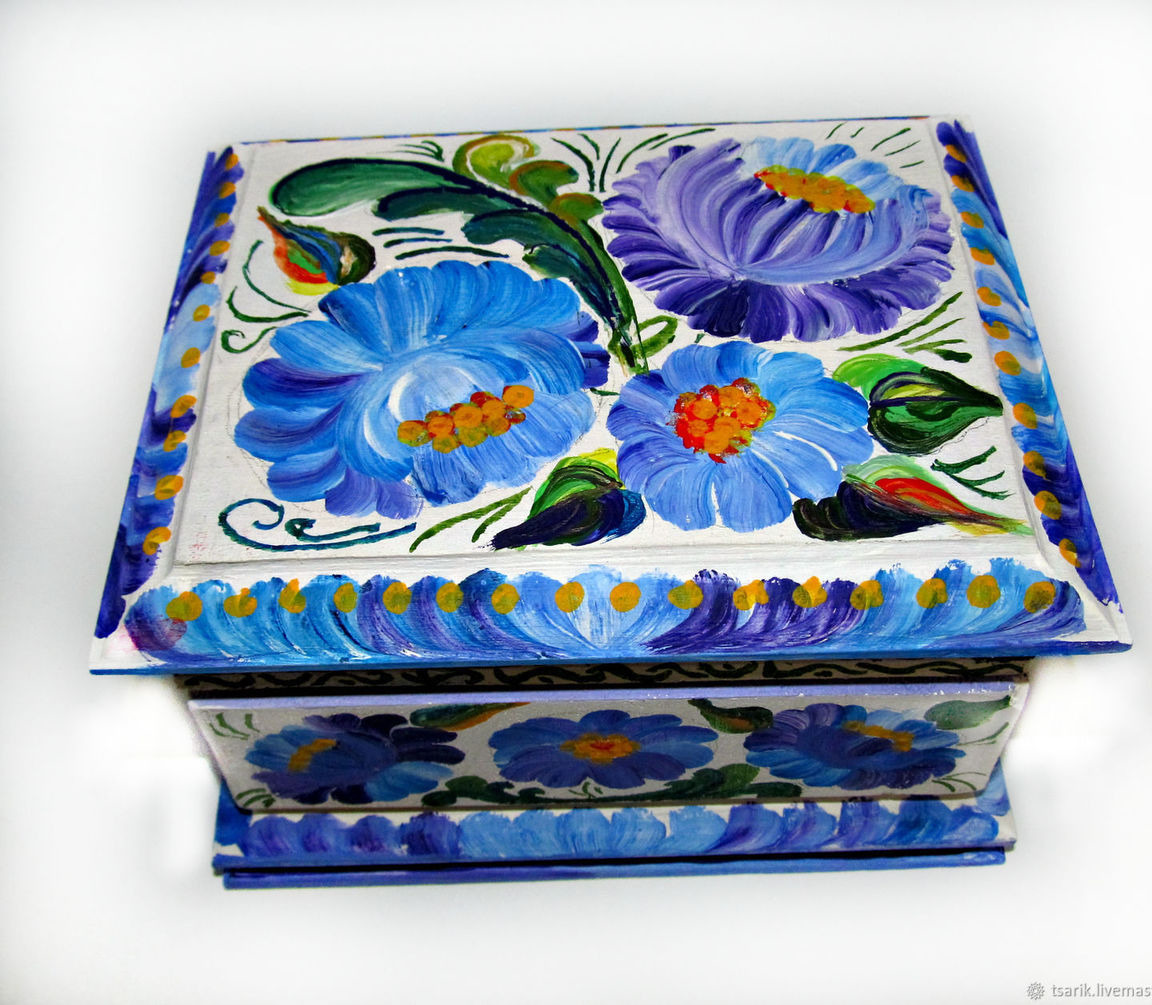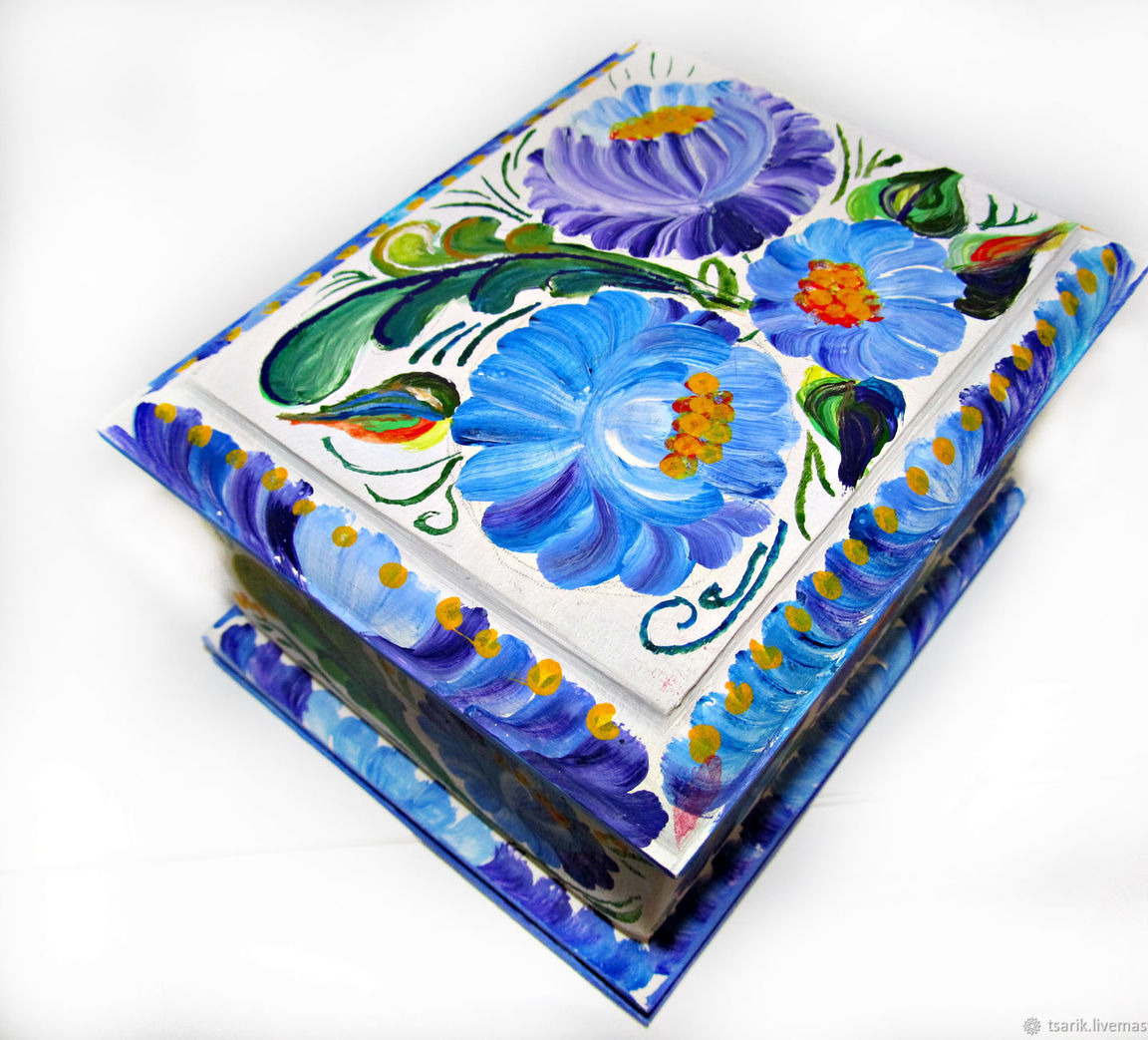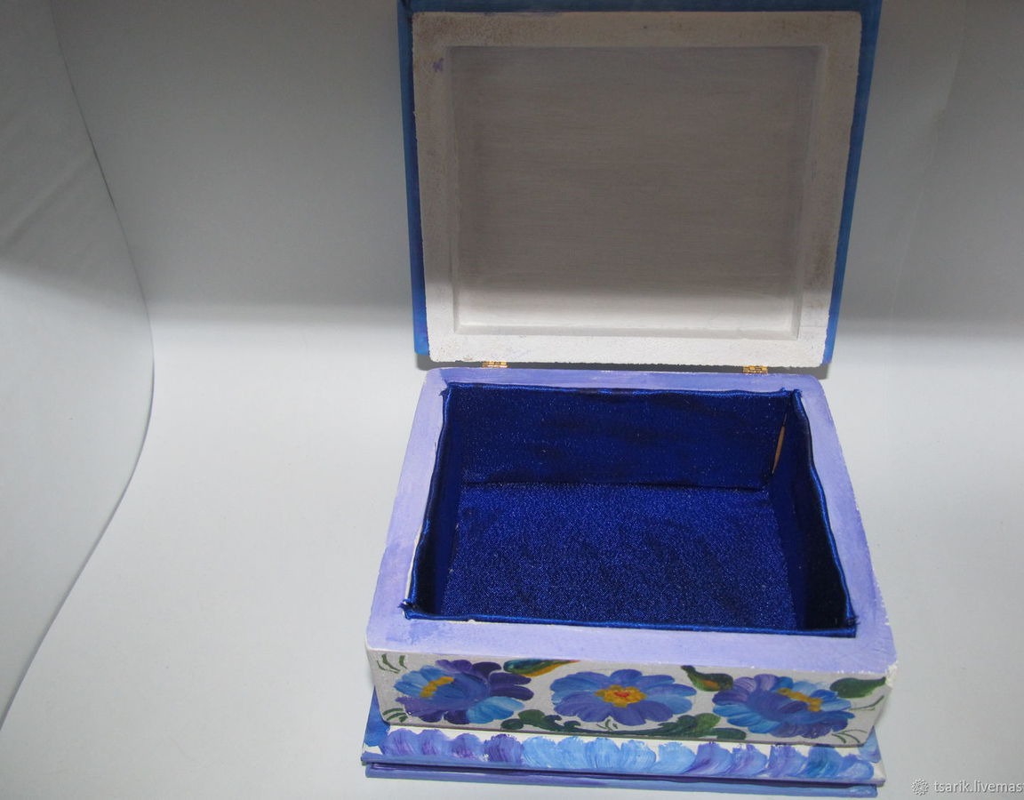 Шкатулка деревянная с ручной росписью акриловыми красками. Прямоугольной формы, для хранения мелочей, украшений, секретов. Размер 150/130/100, внутренний размер 110/100/50, изнутри мягкая отделка атласной тканью темно-синего цвета.Изысканная шкатулка станет стильным акцентом в декоре интерьера.