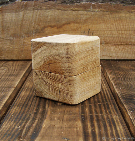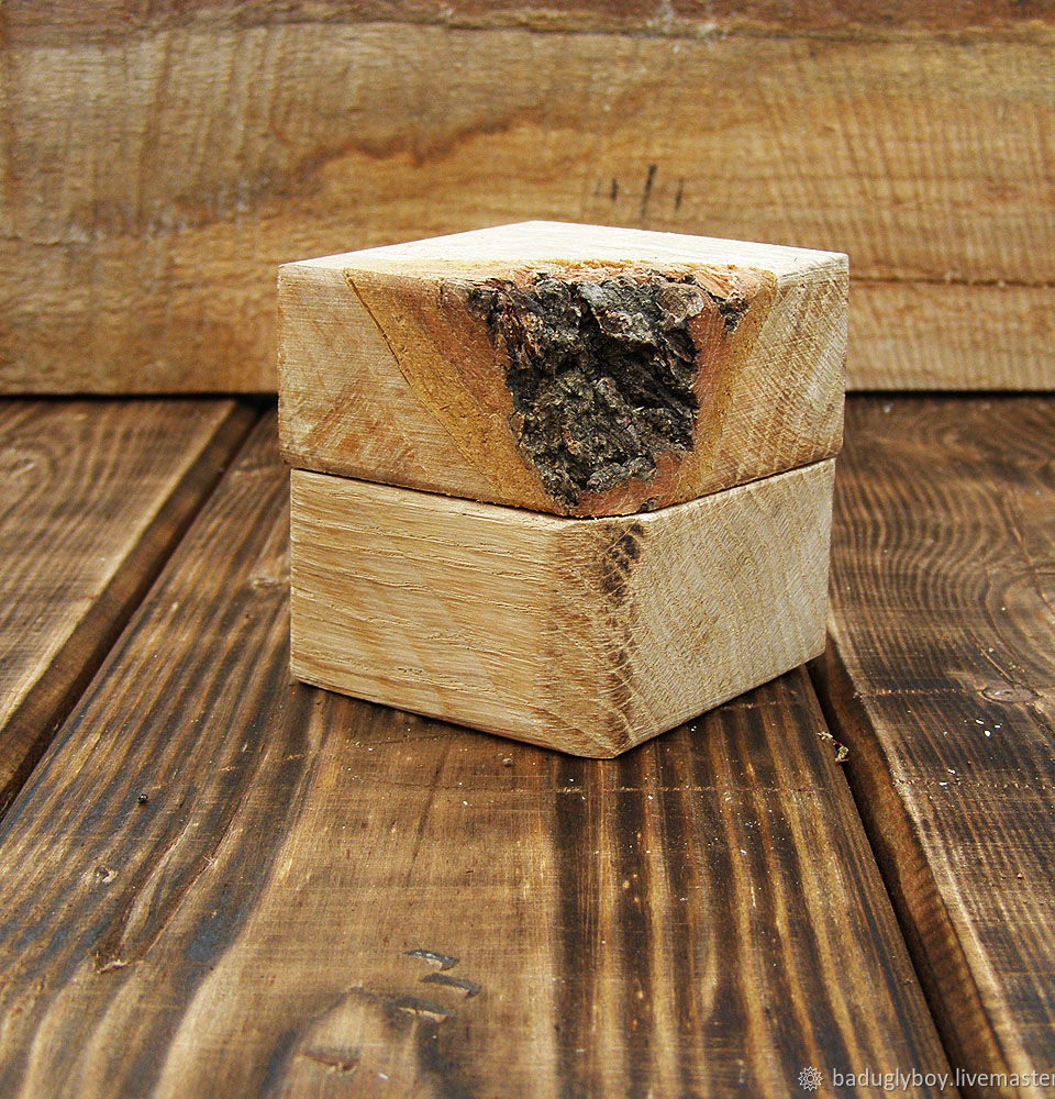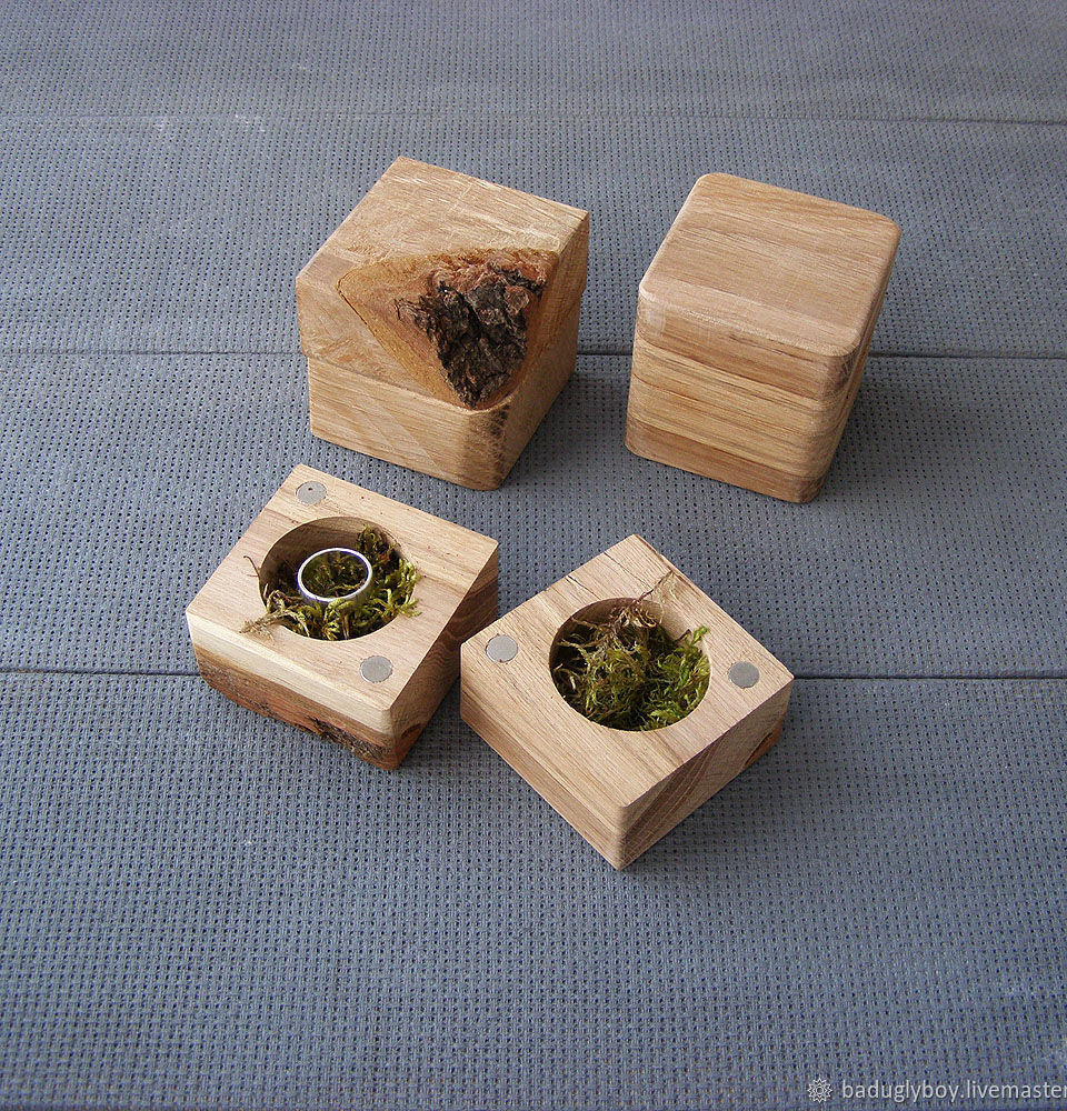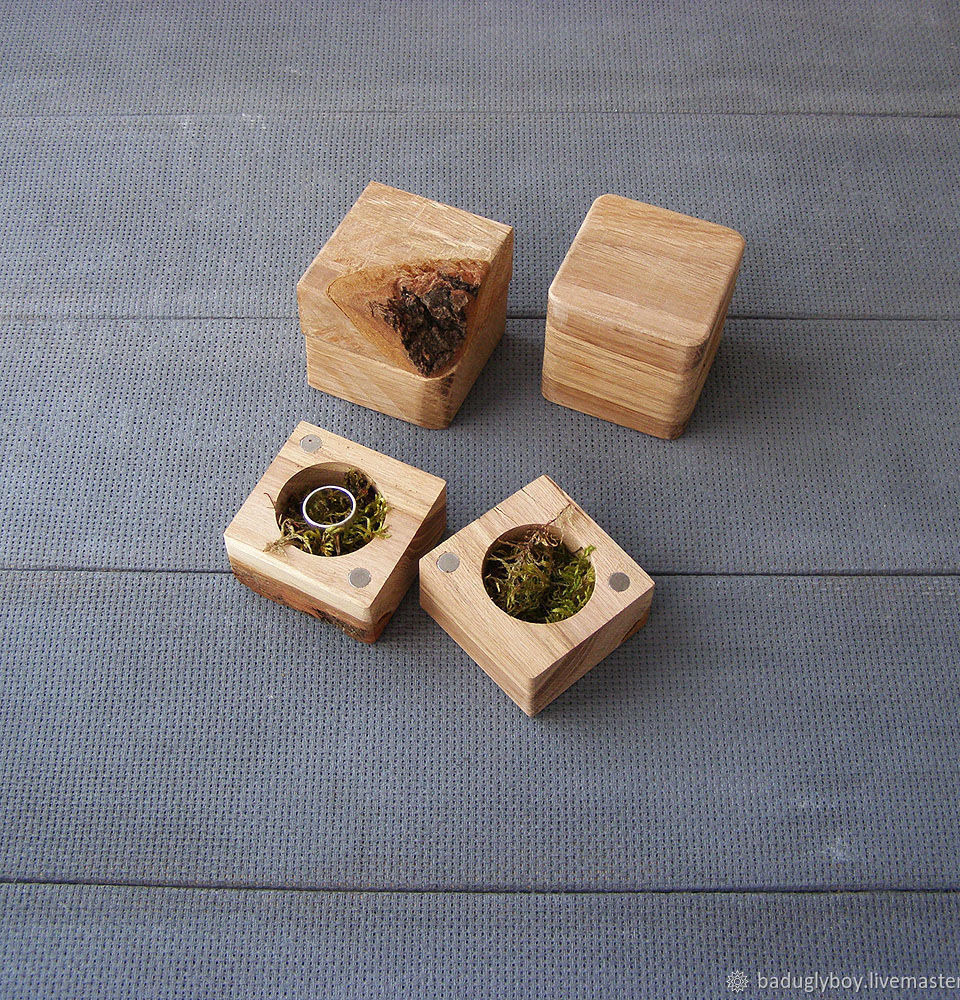 Деревянная коробочка для колец в стиле рустик из натурального дуба на магнитах.