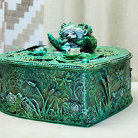 акриловые краски, металлическая фурнитура, акриловый лак, деревянная заготовка, декор, полимерная глина
