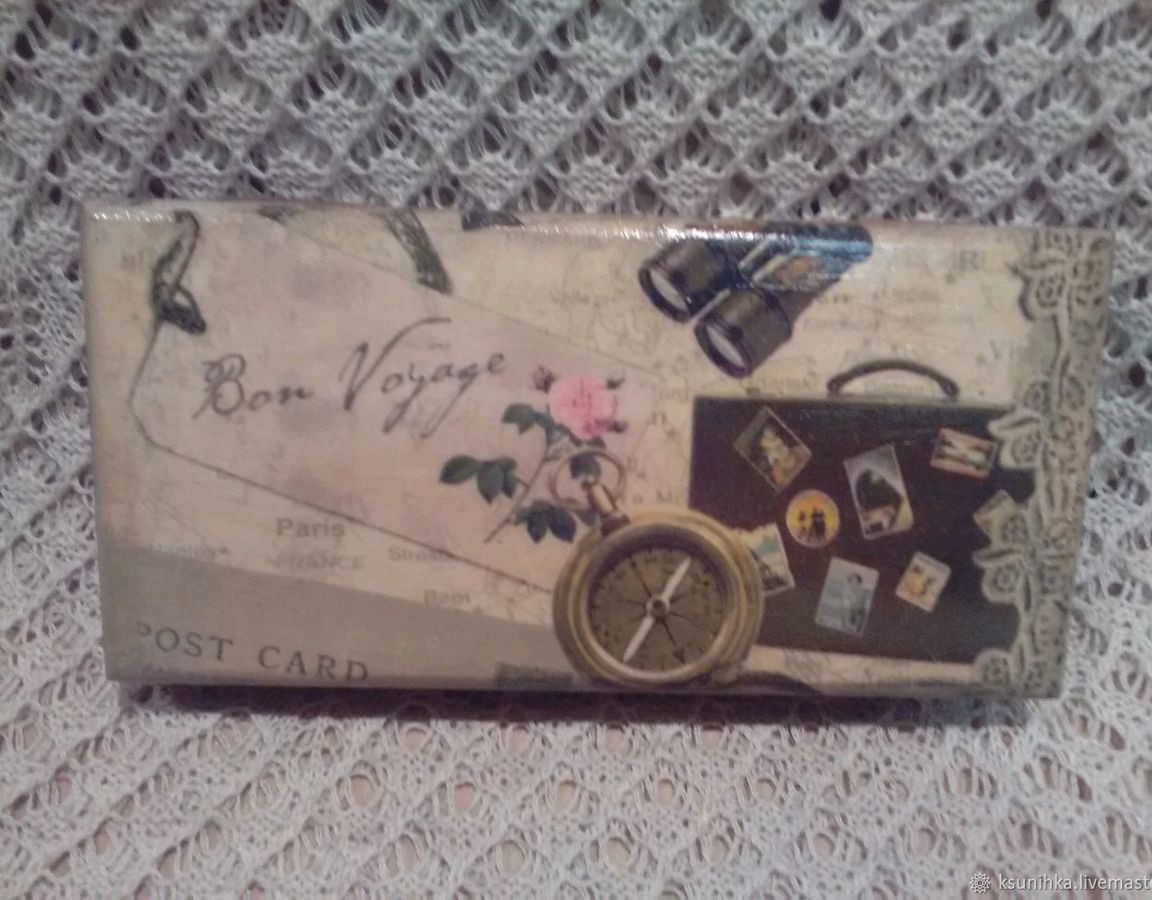 Выполнена в технике декупаж, покрыта матовым лаком.