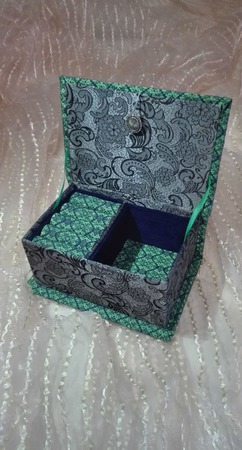 Есть отделение для колец и серег, и отделение для браслетов, кулонов и других украшений.На заказ могу выполнить шкатулку в другой расцветке или форме, в зависимости от ваших пожеланий