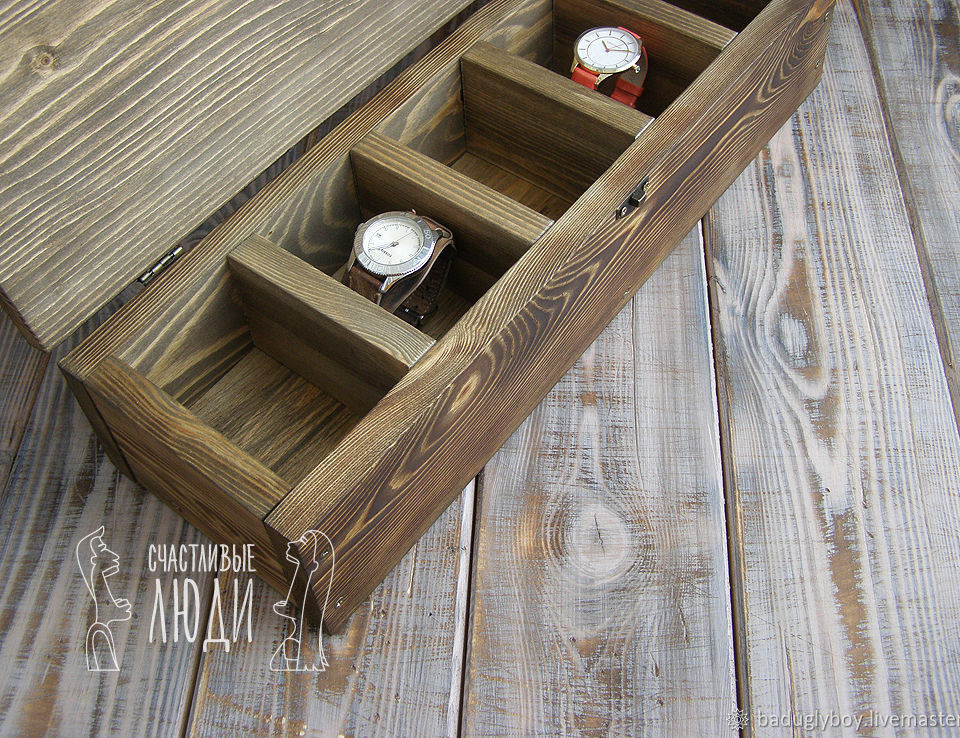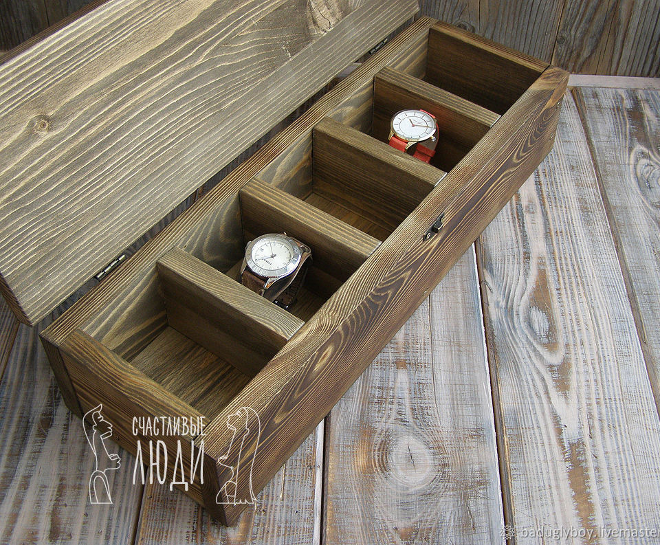 Деревянная шкатулка с разделителями для часов или другихнужных вещей. Шкатулка окрашена в цвет палисандр. Крепление крышки шкатулки на петельках и замочке (или двух замочках).