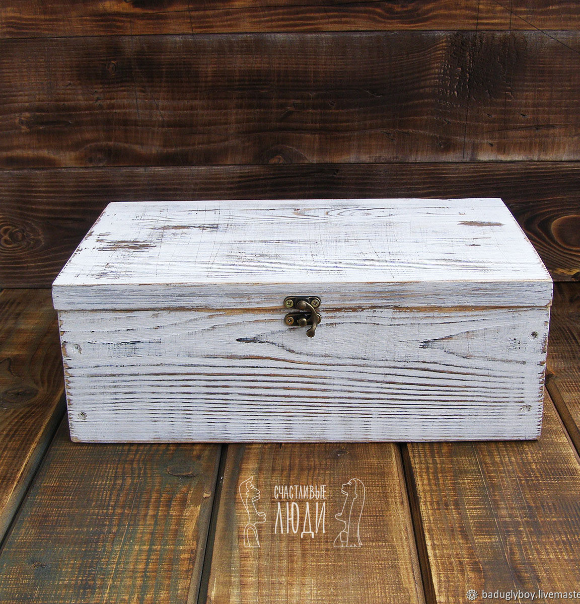 Шкатулка изготовлены из хвойных пород дерева, покрыта морилкой и воском (либо лаком)