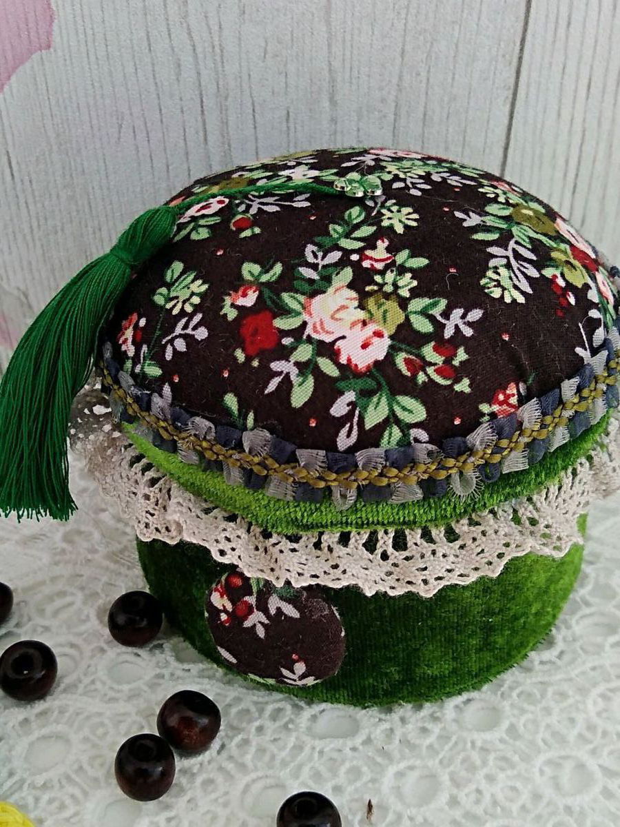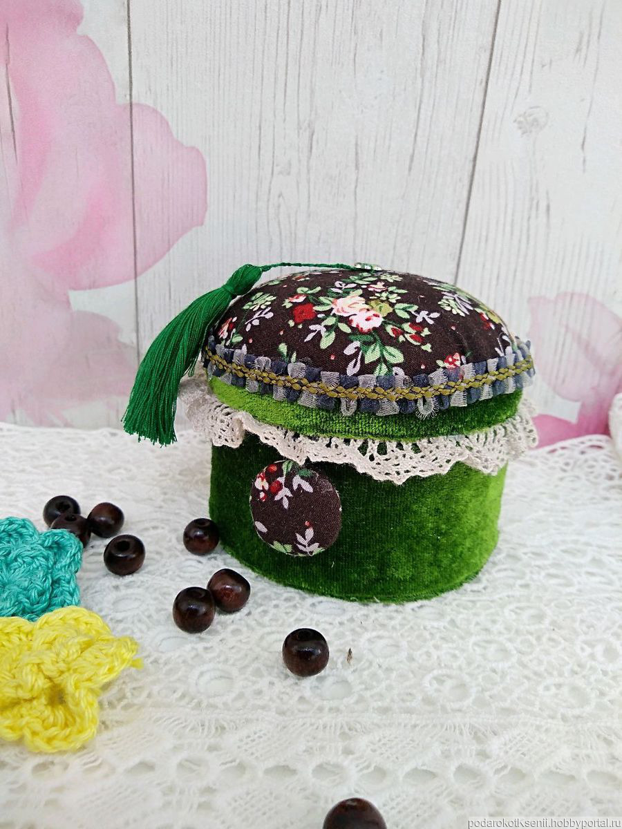 Игольница-шкатулка. Станет прекрасным подарком любимым женщинам, девушкам, мамам и бабушкам. Приятная на ощупь, подарит Вам теплоту, создаст уютное настроение. Сверху иголочки, булавочки, внутрь - что Вашей душе угодно: пуговички, кружево, бисер, швейные принадлежности, можно даже как копилку использовать.