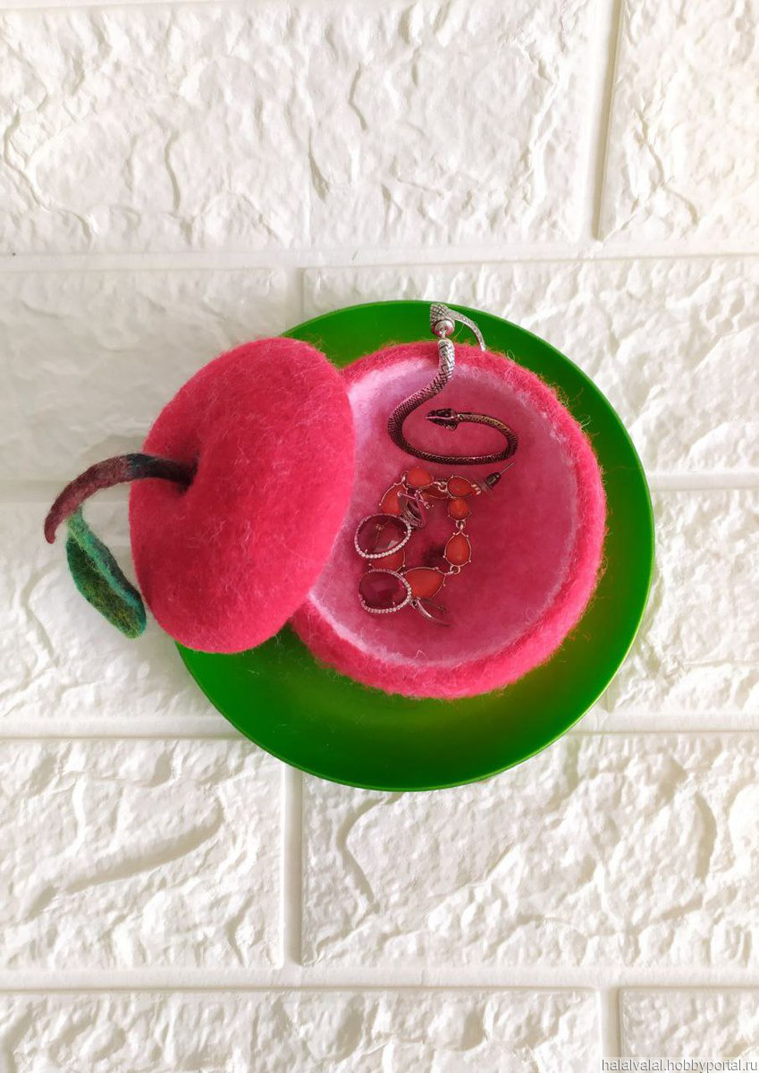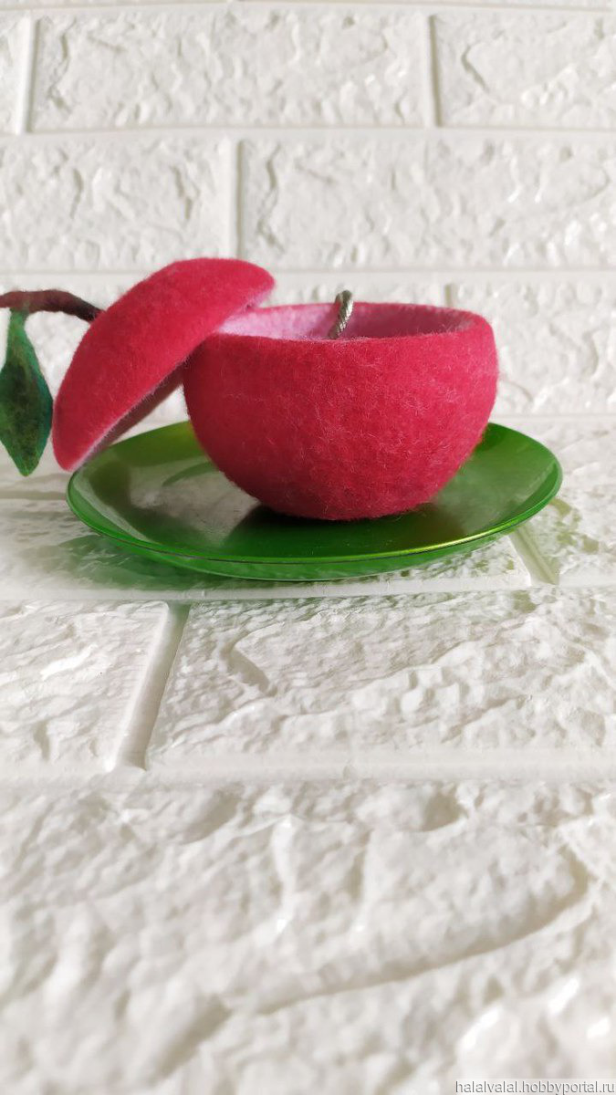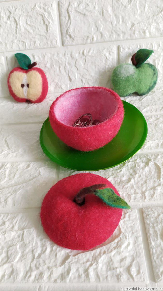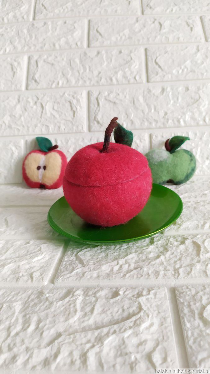 Шкатулка в форме яблока сваляна из шерсти. Прекрасно держит форму. Тактильно приятна.