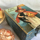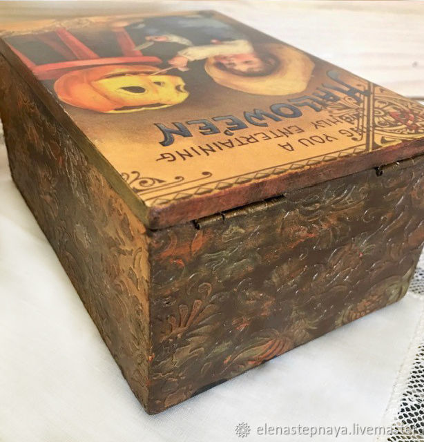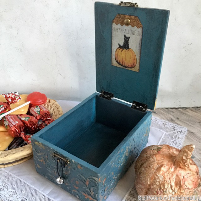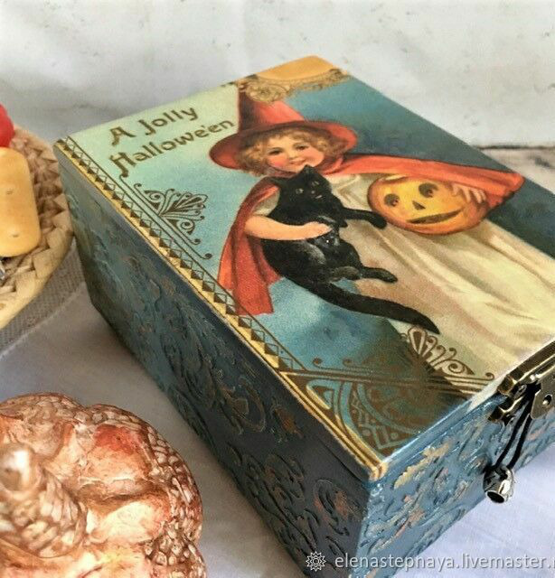 Хотя у нас этот праздник не очень популярен, есть повод пойти на вечеринку или встретиться с друзьями в кафе или дома! А такие шкатулки, с симпатичными детишками, будут приятным сюрпризом! Шкатулки на маленьких ножках, украшены металлической подвеской-тыковкой.