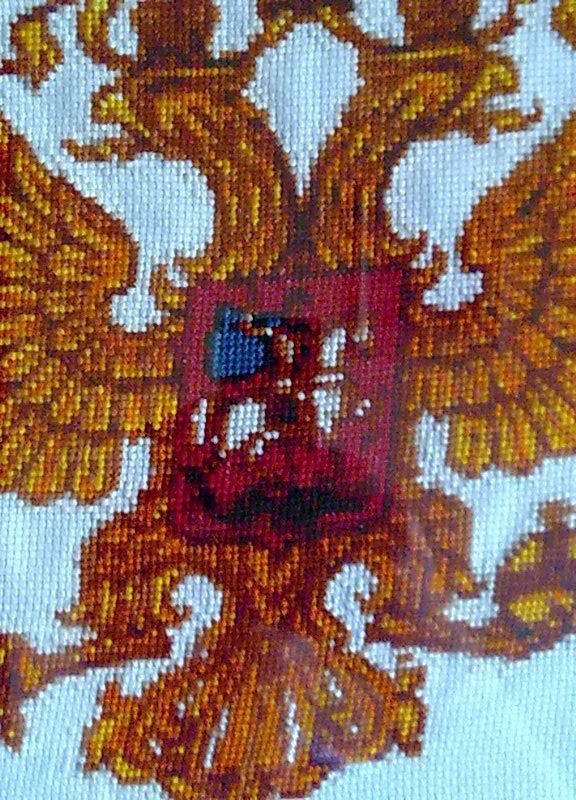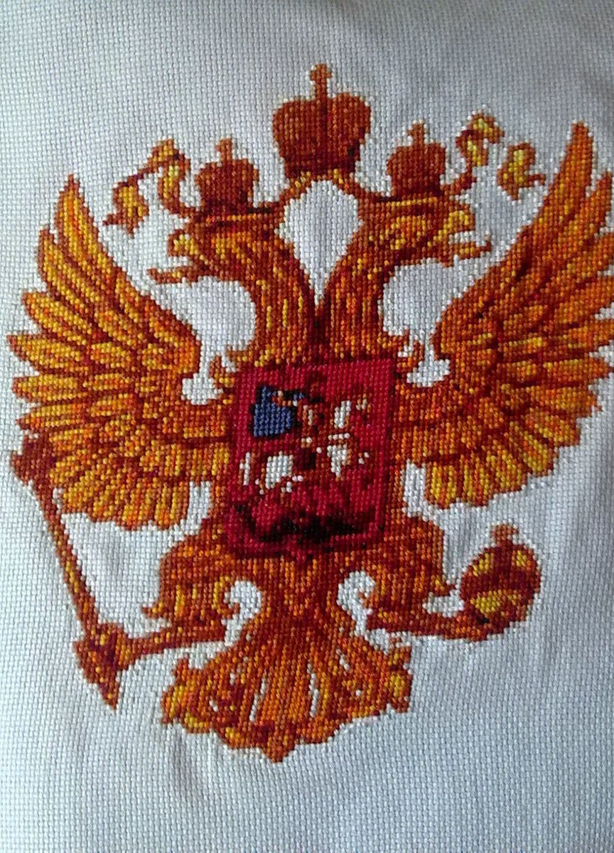 Ручная вышивка крестом. Прекрасный и очень патриотичный подарок! НА мой взгляд - подойдёт любому россиянину(или россиянке). Оформлено в рамку под стекло, но возможно переоформление в багет. Пересылка без рамки - так надёжнее