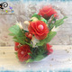 Высота 22см, диаметр блюдца 15см, размер головы гнома от уха до уха 10см, диаметр роз 7см, диаметр бутонов 2,5см, диаметр мелкоцвета 3см